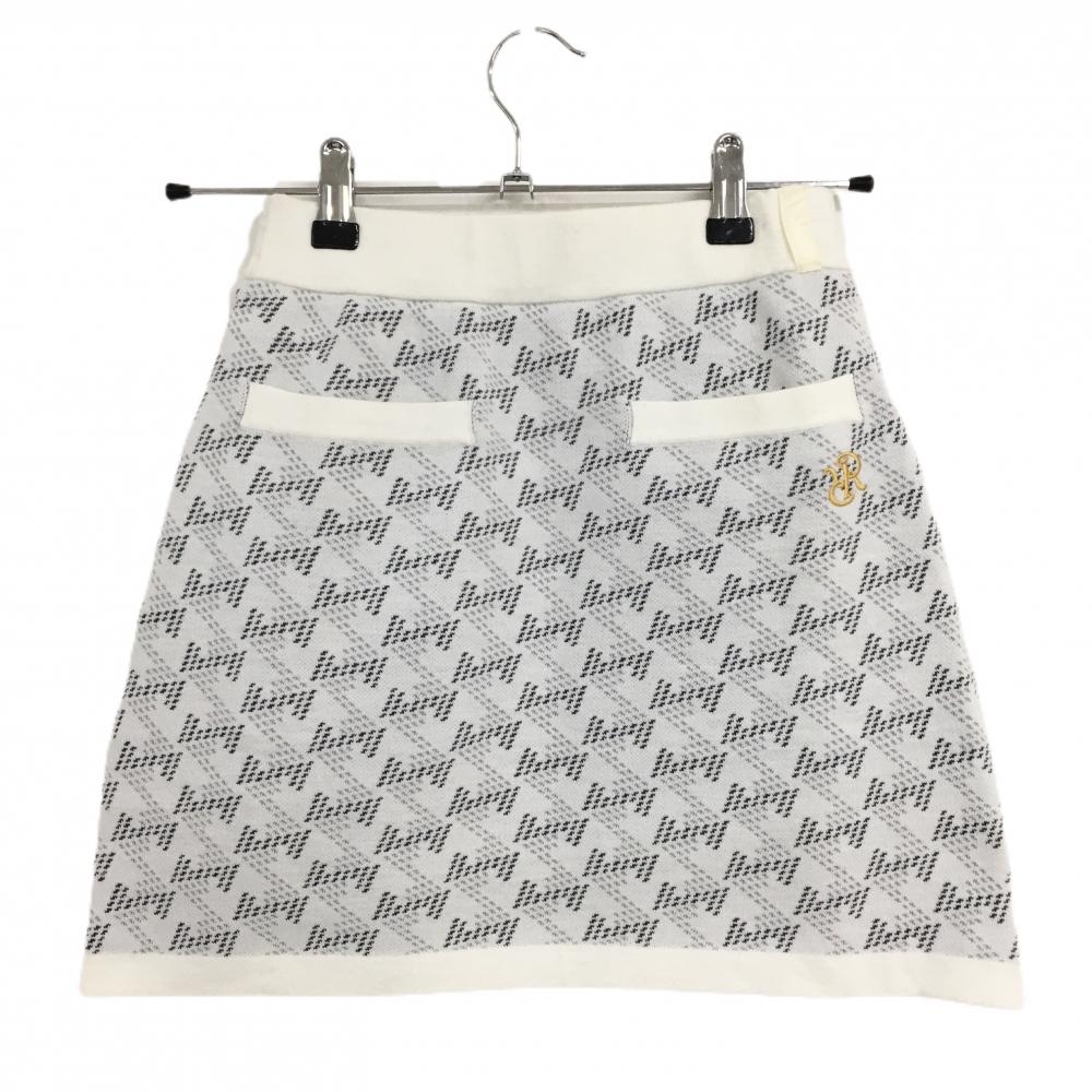 【美品】レザレクション ニットスカート 白×ダークグレー 総柄 ウエストゴム&調節紐 レディース XS ゴルフウェア Resurrection