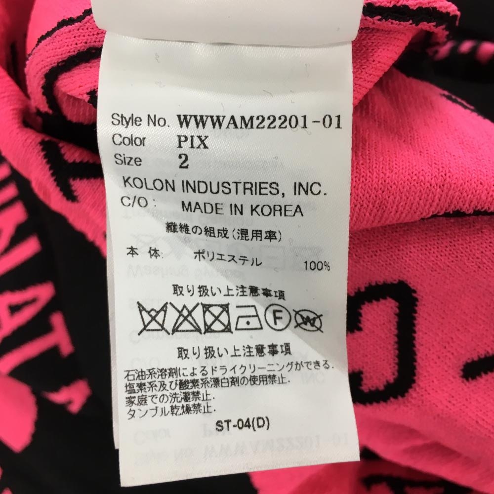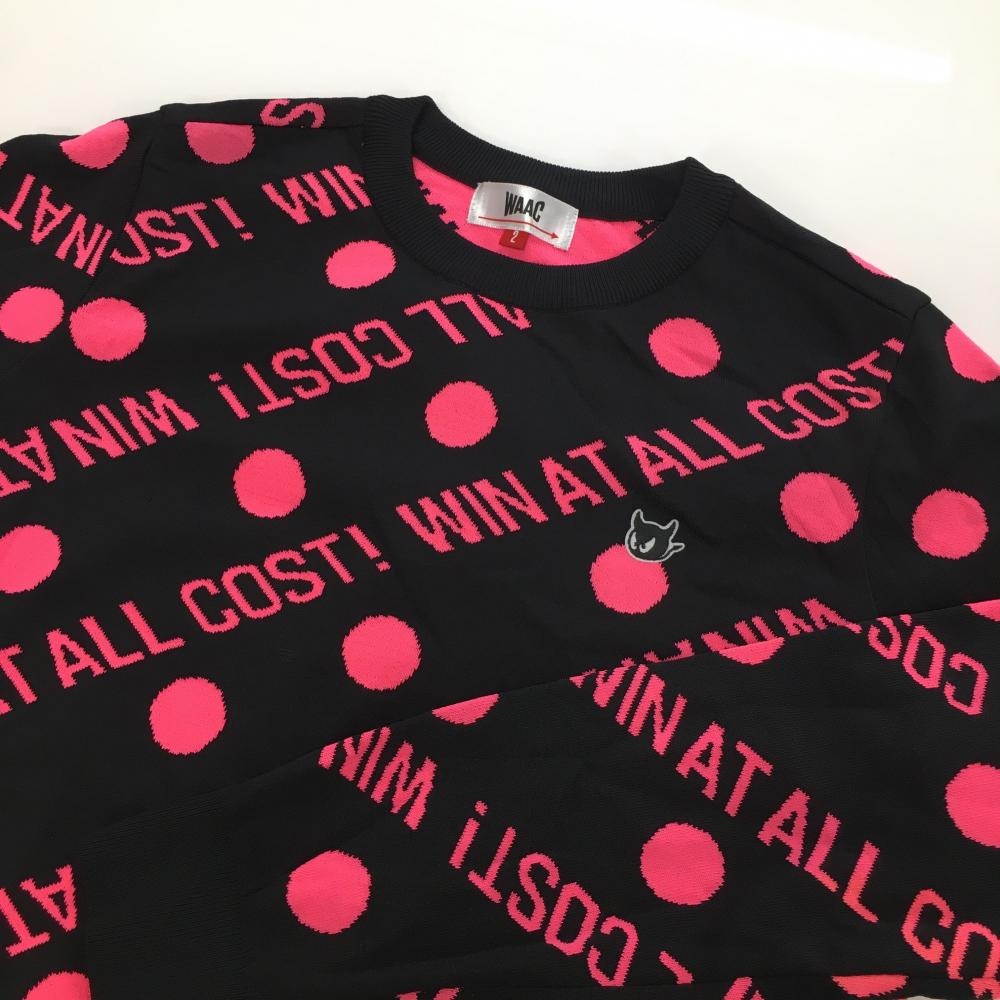 【超美品】ワック セーター 黒×蛍光ピンク ドット 英字総柄 韓国モデル ニット レディース 2(M) ゴルフウェア WAAC