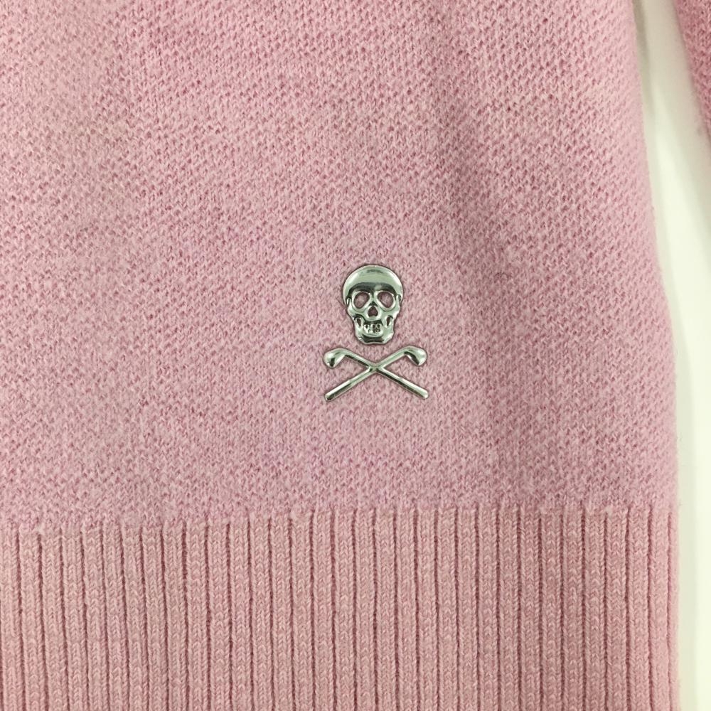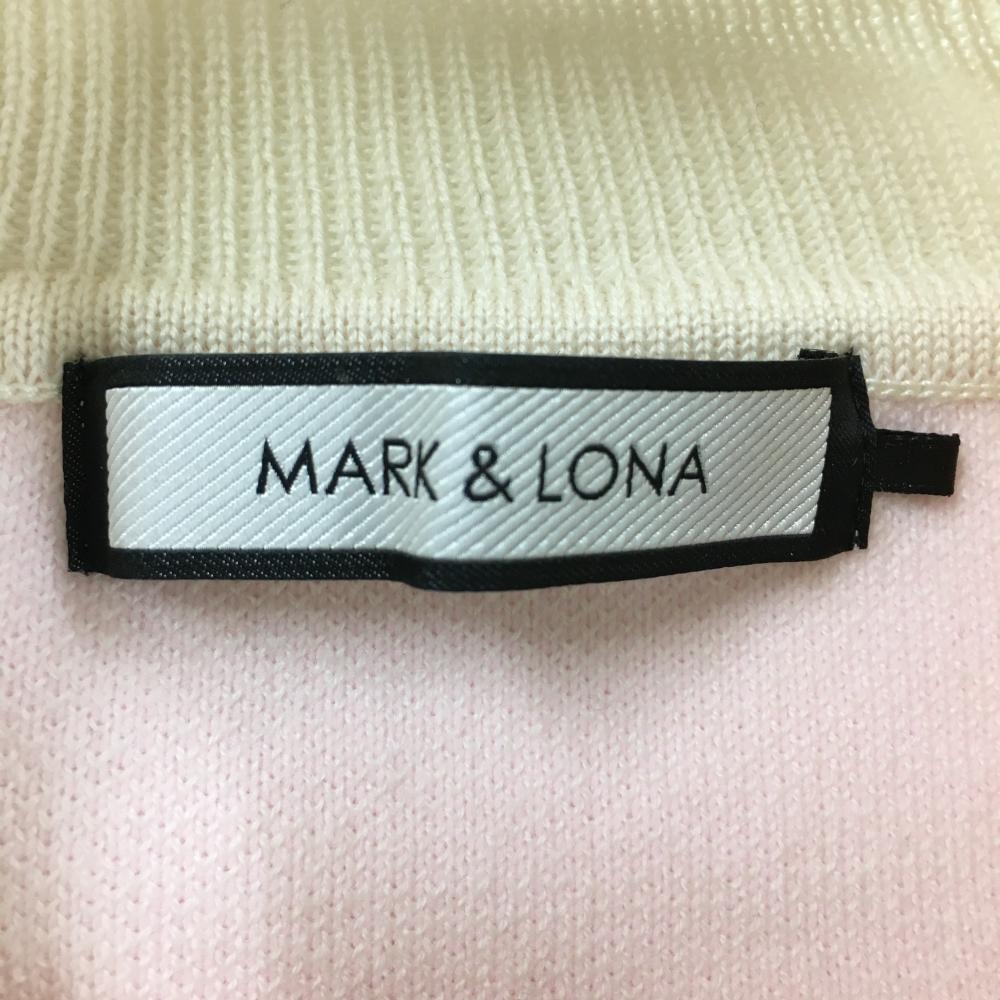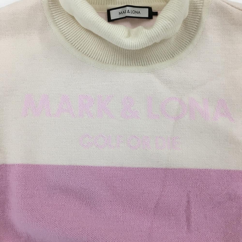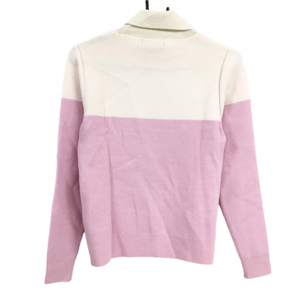 【美品】マークアンドロナ タートルネックセーター ピンク×アイボリー ニット ウール混 レディース 38(M) ゴルフウェア MARK&LONA