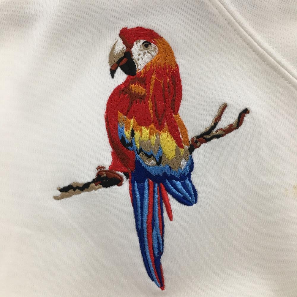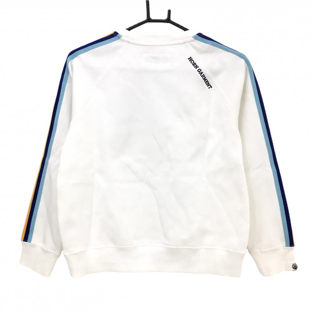 ホーンガーメント トレーナー 白×レッド マークアンドロナ 袖ライン スウェット 刺しゅう レディース M ゴルフウェア MARK&LONA