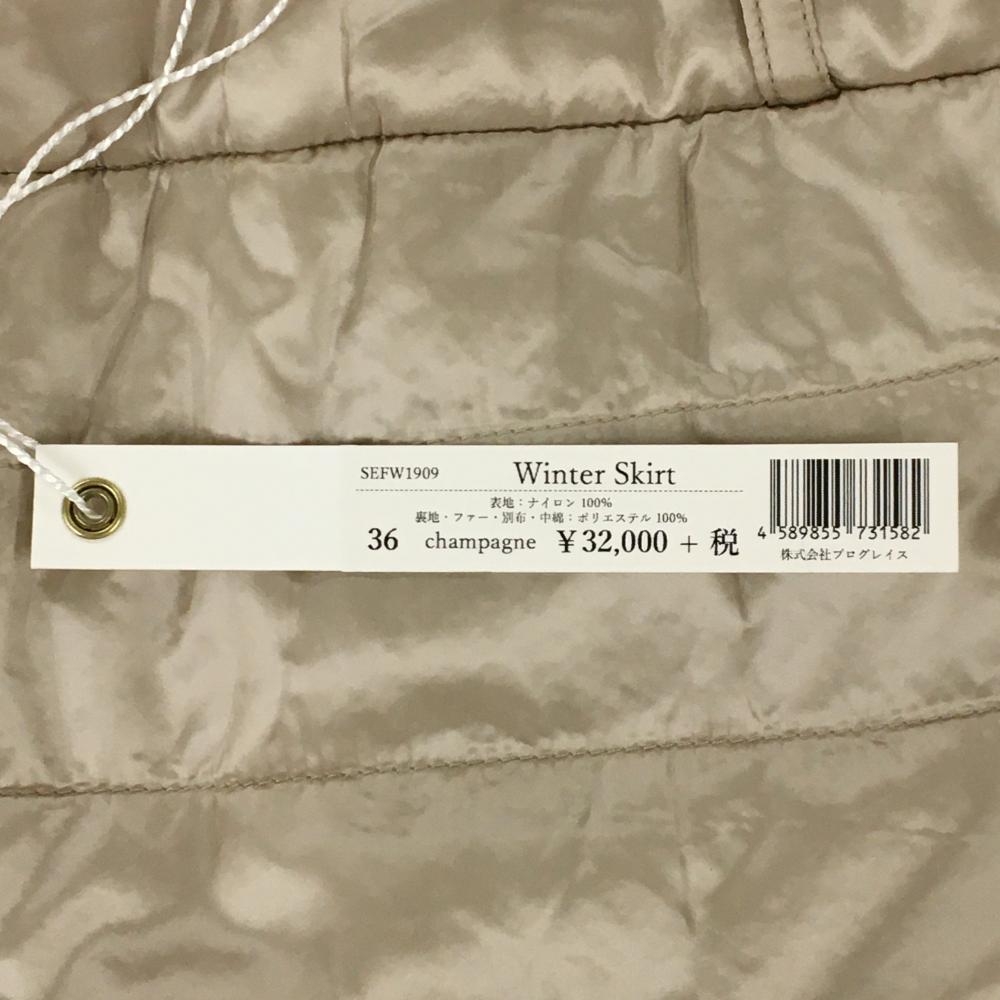 【未使用品】アジェイド 中綿スカート ベージュ 裾ファー 光沢 レディース 36 ゴルフウェア aJADE