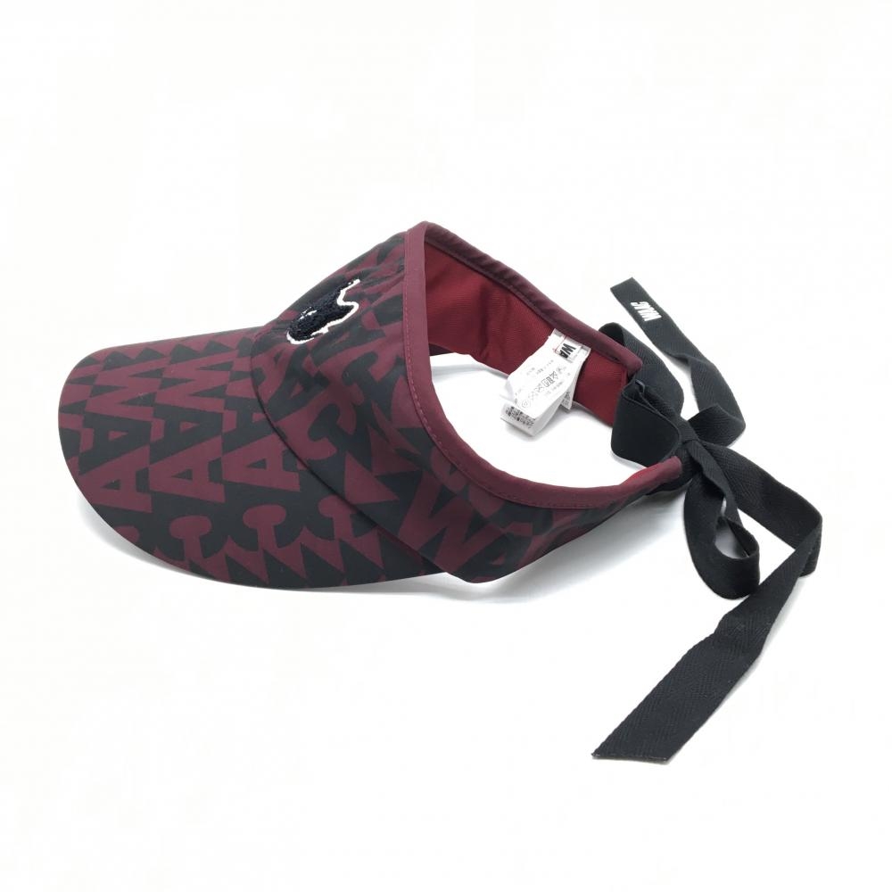 【超美品】ワック サンバイザー ダークパープル系×黒 総柄 ワッペン レディース 1098 ゴルフウェア WAAC