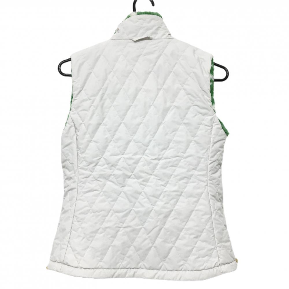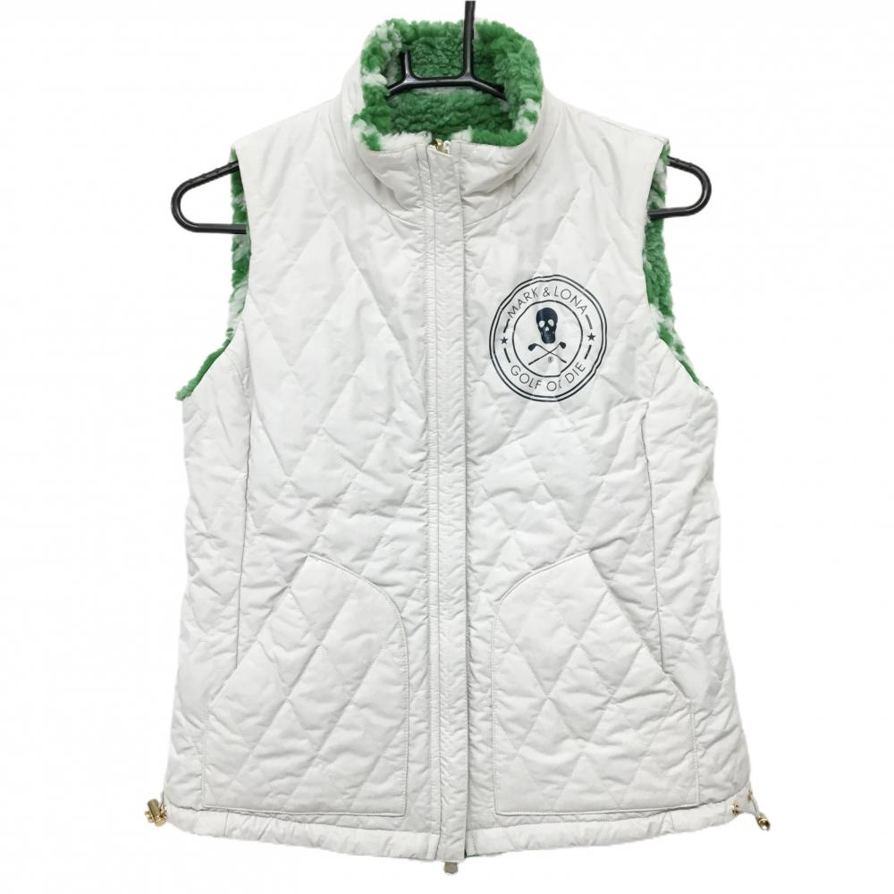 マークアンドロナ 中綿ボアリバーシブルベスト グリーン×白 総柄 裏ライトグレー レディース 38(M) ゴルフウェア MARK&LONA