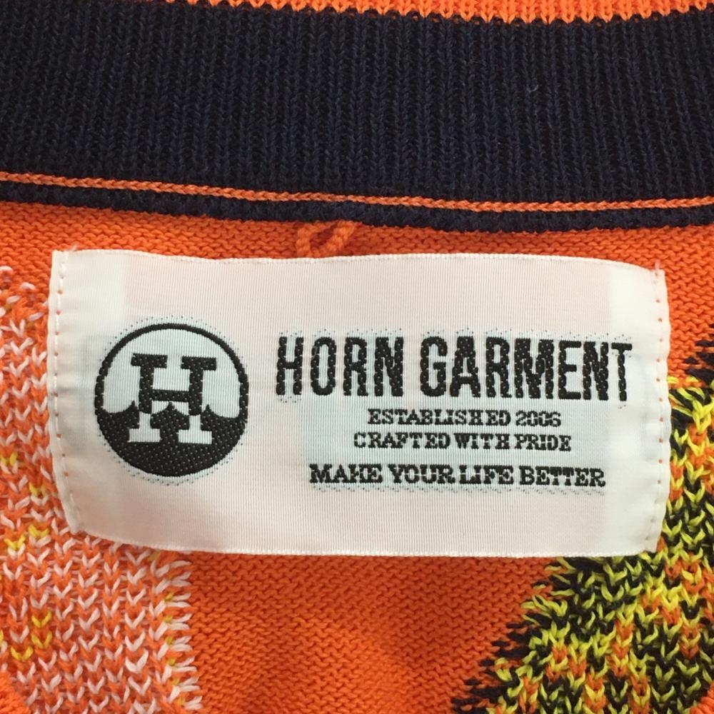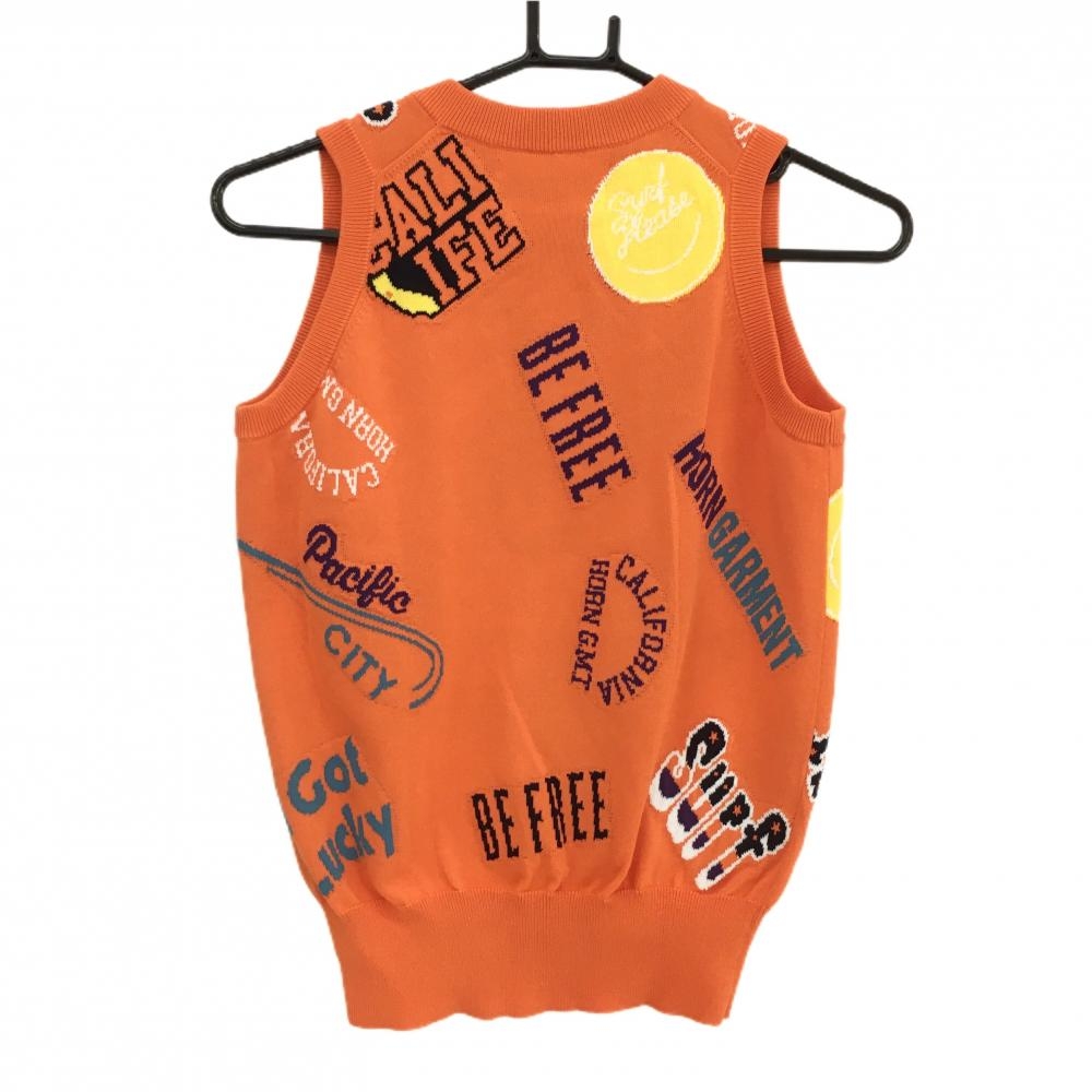【超美品】ホーンガーメント ニットベスト オレンジ×マルチカラー 総柄 マークアンドロナ Vネック レディース M ゴルフウェア MARK&LONA
