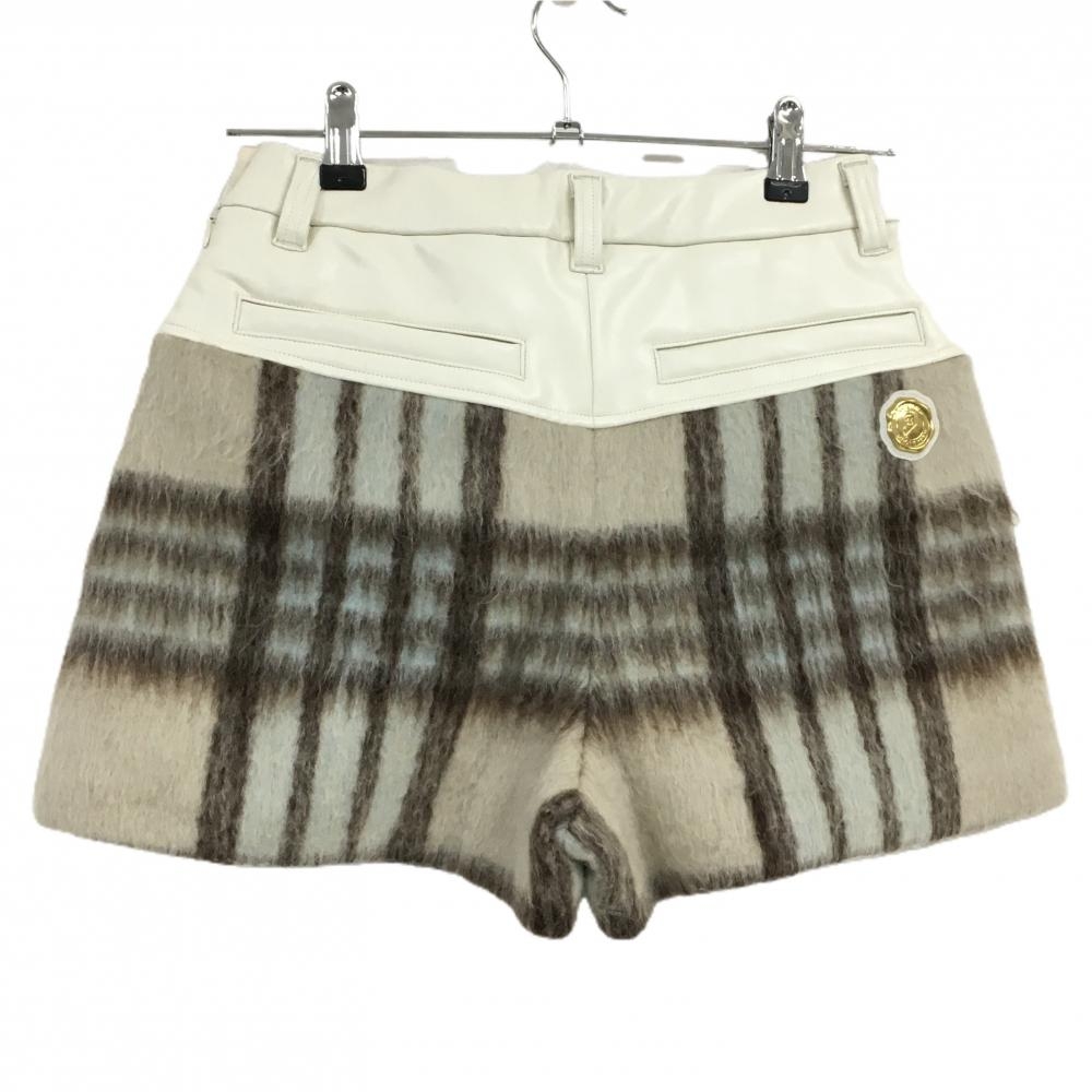 【美品】マークアンドロナ 異素材ニットパンツ ベージュ系×ダークブラウン レディース 38(M) ゴルフウェア 2024年モデル MARK&LONA
