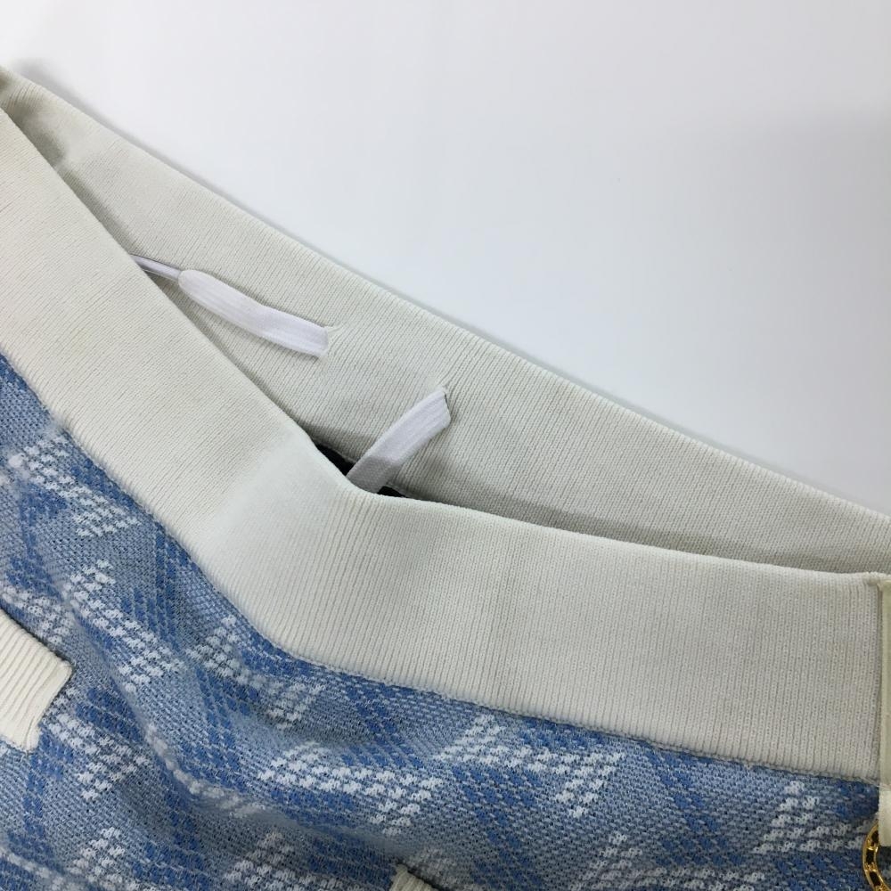 レザレクション ニットスカート ライトブルー×白 総柄 ストレッチ ウエストゴム&調節紐 レディース XS ゴルフウェア Resurrection