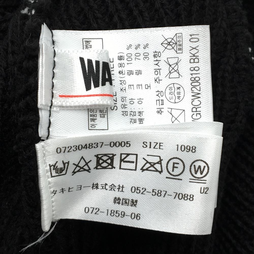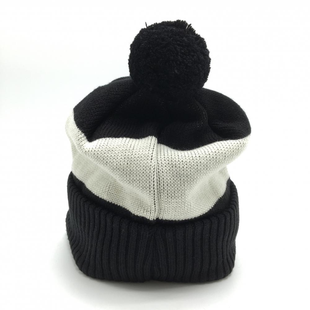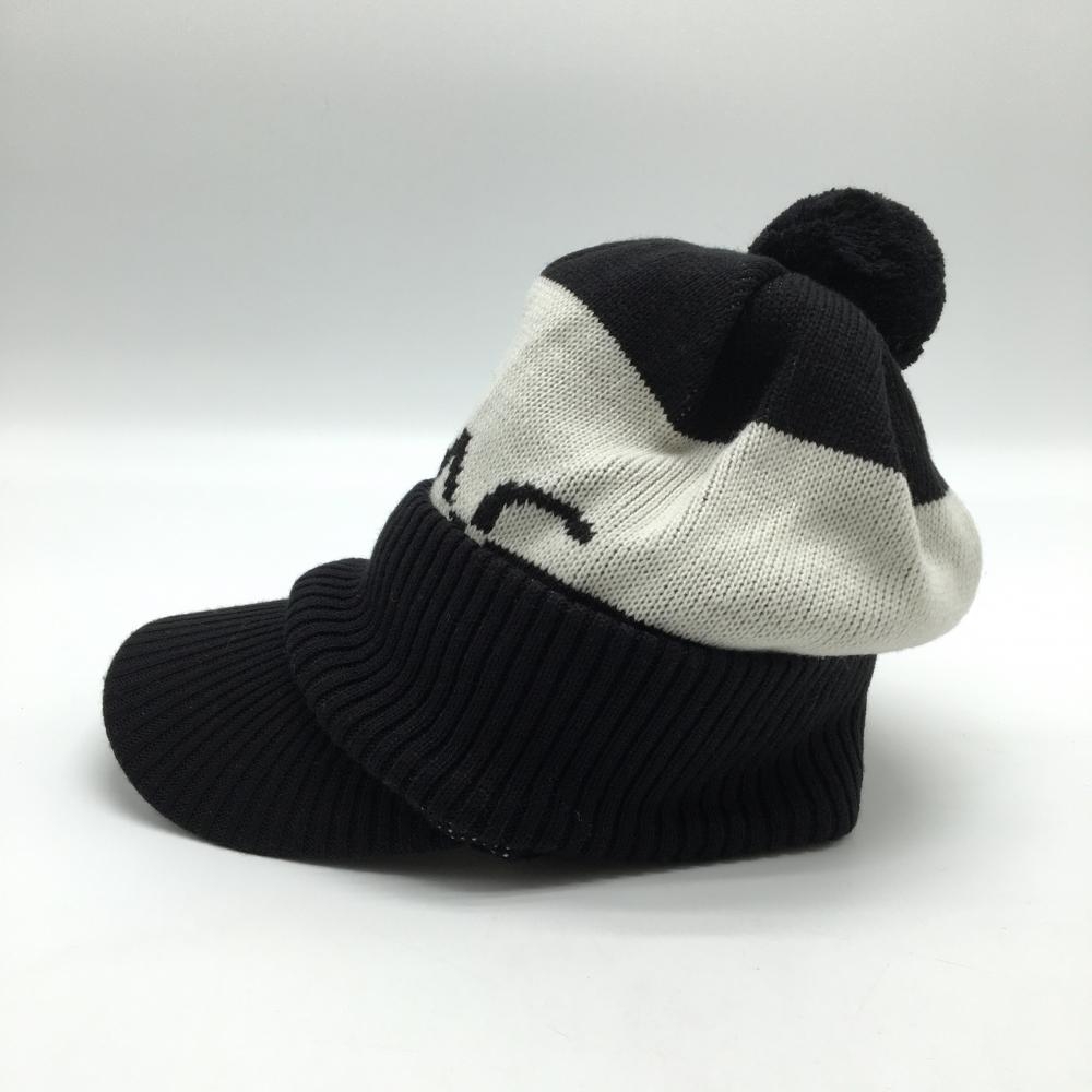 【超美品】ワック つば付ニット帽 黒×白 ボンボン・ネックウォーマー付 アクリル100% レディース FREE ゴルフウェア WAAC