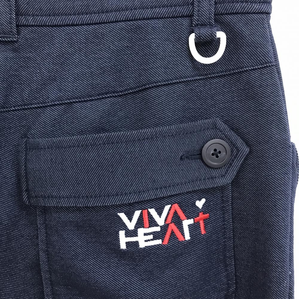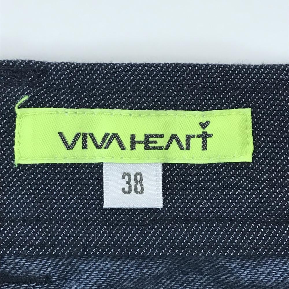 【美品】ビバハート パンツ ダークネイビー デニム風 ストレッチ ロゴ刺しゅう 裏起毛 レディース 38(S) ゴルフウェア VIVA HEART