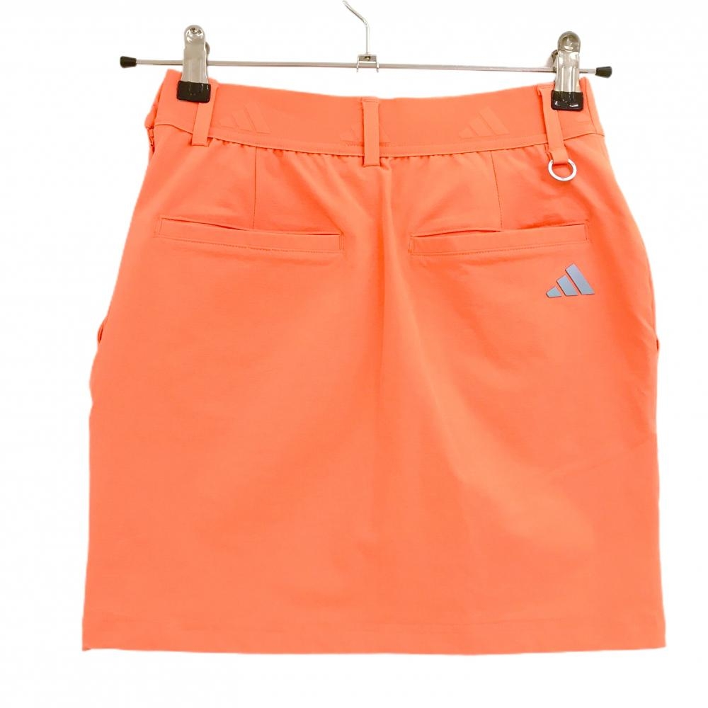 【美品】アディダス スカート ネオンオレンジ バックロゴ ストレッチ 内側インナーパンツ レディース XS ゴルフウェア adidas