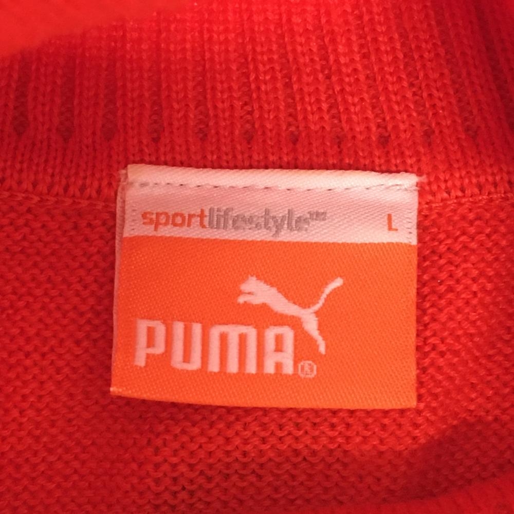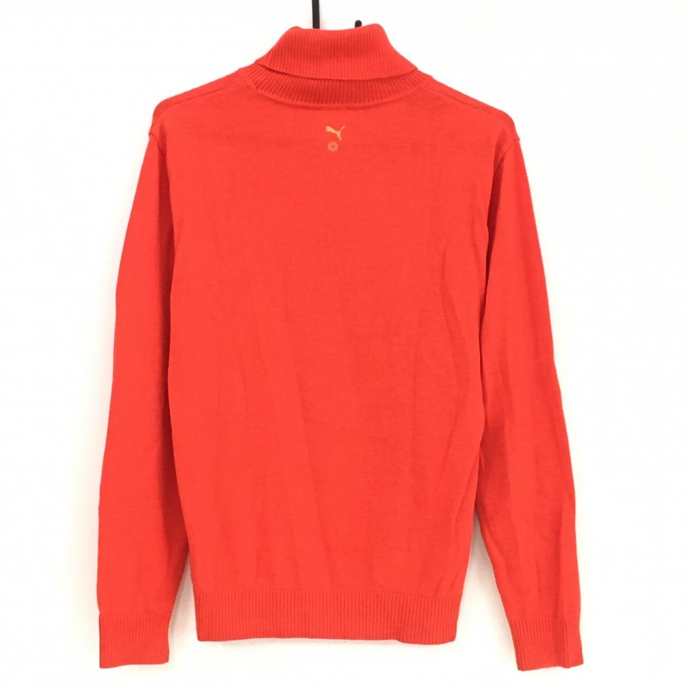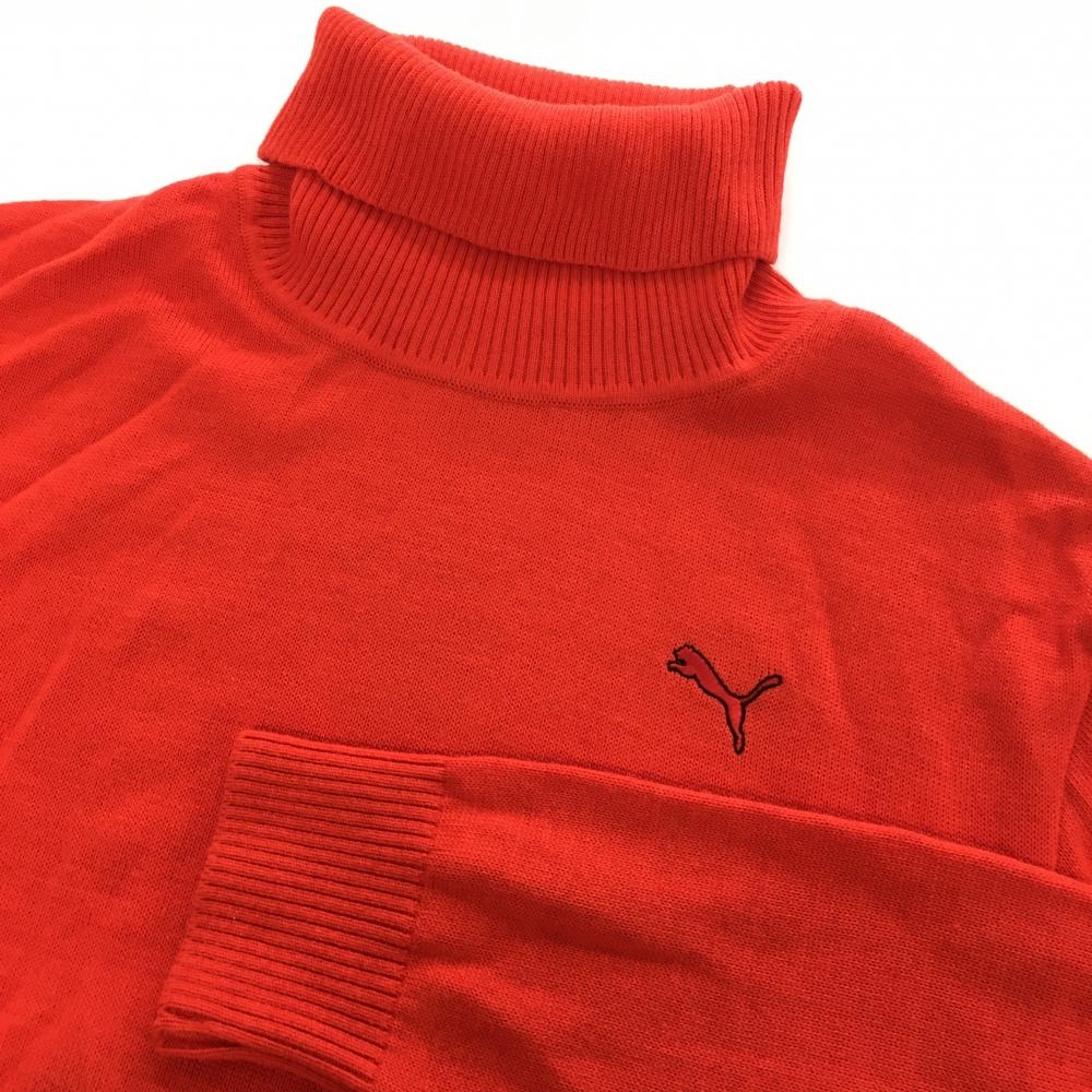 【超美品】プーマ タートルネックセーター レッド ロゴ刺しゅう ウール混 ニット メンズ L ゴルフウェア PUMA