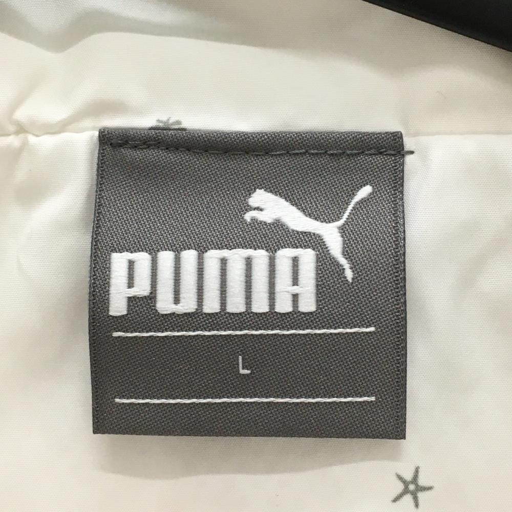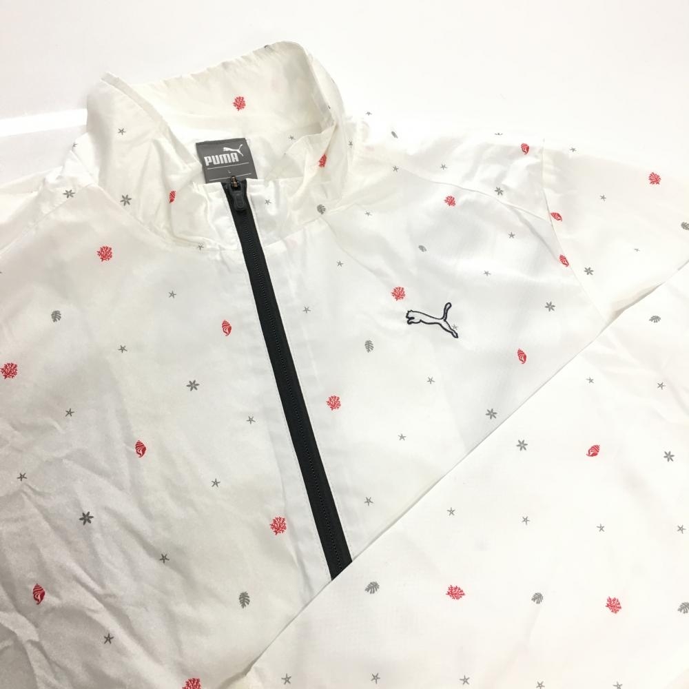【美品】プーマ ジャケット 白×グレー 総柄 裏地メッシュ 裾ドローコード メンズ L ゴルフウェア PUMA