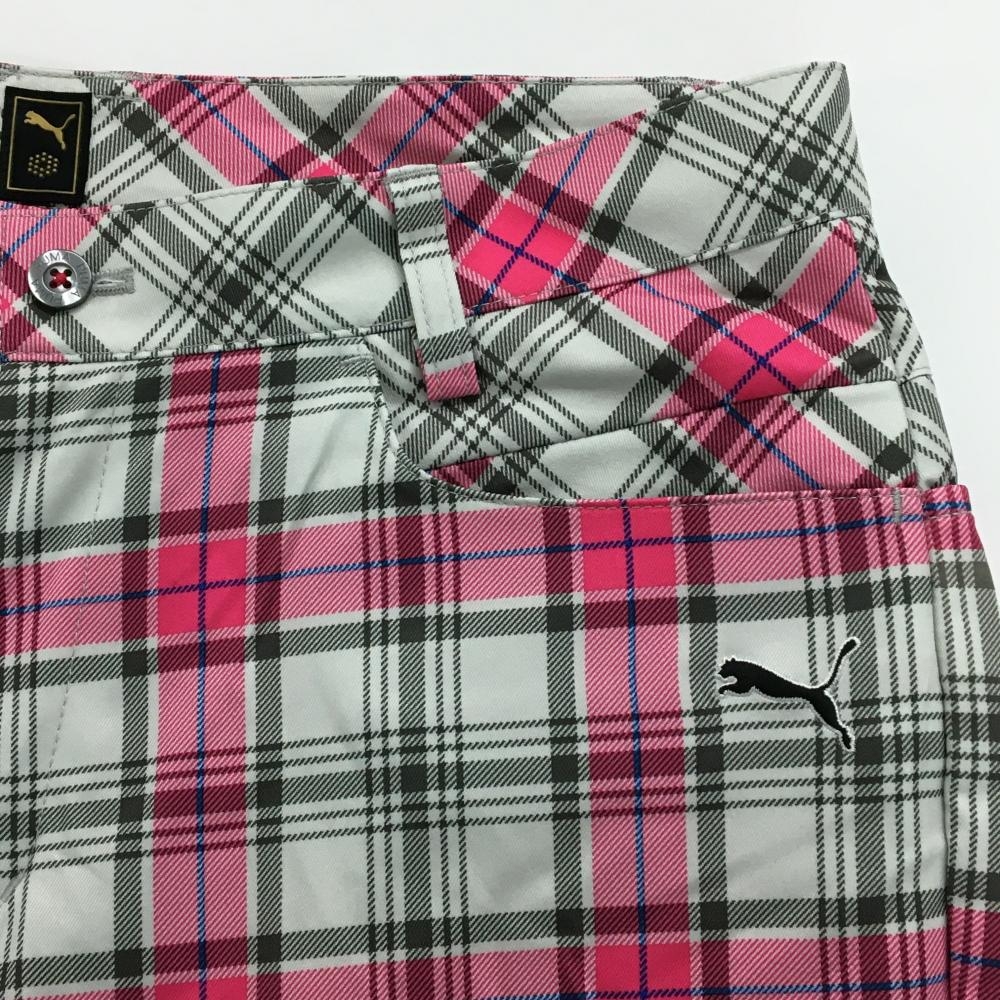 【超美品】プーマ パンツ ライトグレー×ピンク チェック ロゴ刺しゅう メンズ 82 ゴルフウェア PUMA