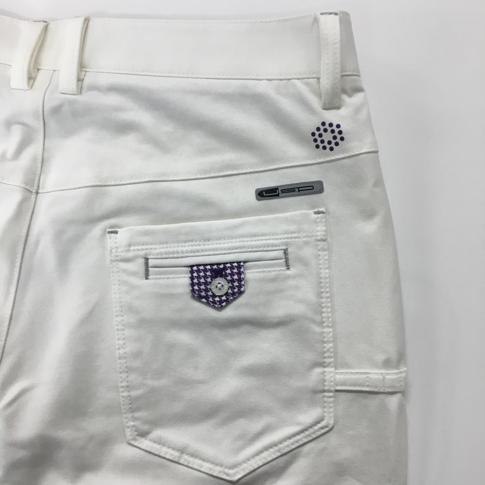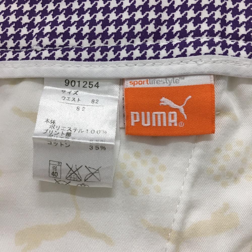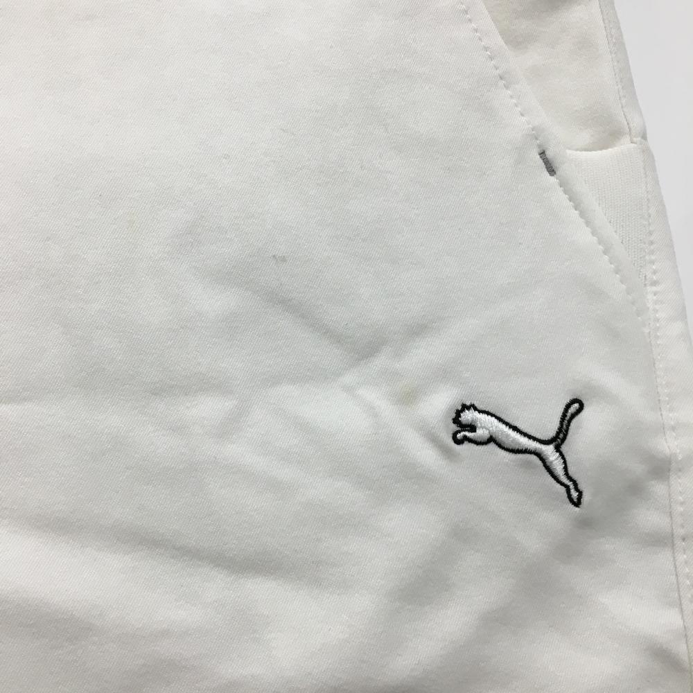 【美品】プーマ パンツ 白 ロゴ刺しゅう ウエスト裏千鳥格子 メンズ 82 ゴルフウェア PUMA