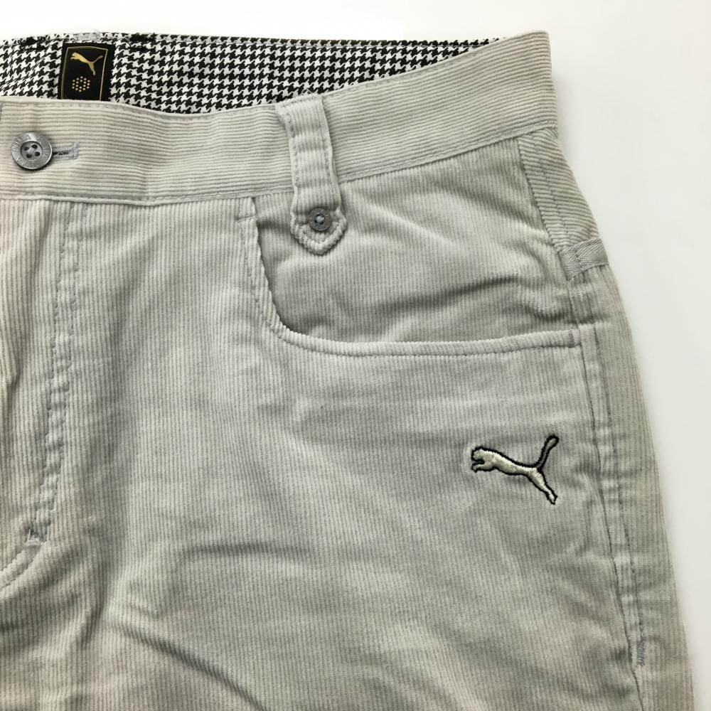 【美品】プーマ コーデュロイパンツ ライトグレー×黒 ロゴ刺しゅう メンズ 82 ゴルフウェア PUMA