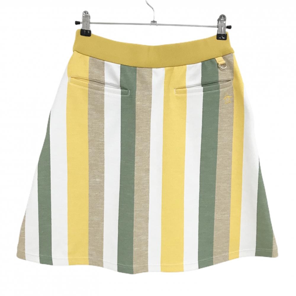 【超美品】マンシングウェア スカート イエロー×白 ストライプ ウエストゴム レディース L ゴルフウェア Munsingwear