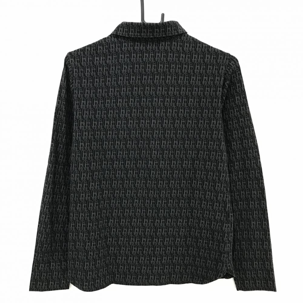 【美品】キャロウェイ 長袖ポロシャツ 黒×グレー ロゴ総柄 ラインストーンロゴ レディース L ゴルフウェア Callaway