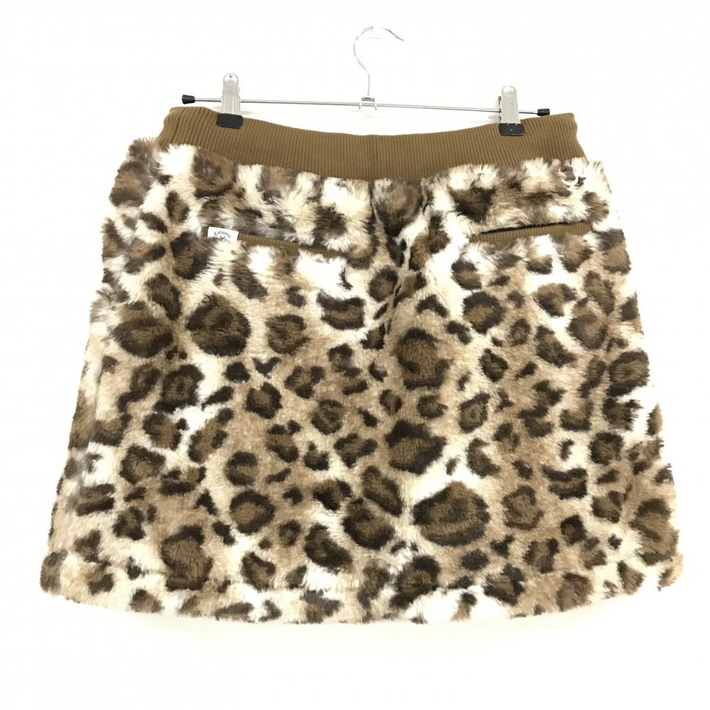 【超美品】キャロウェイ ボアスカート ブラウン×白 レオパード柄 ウエストゴム レディース LL ゴルフウェア Callaway
