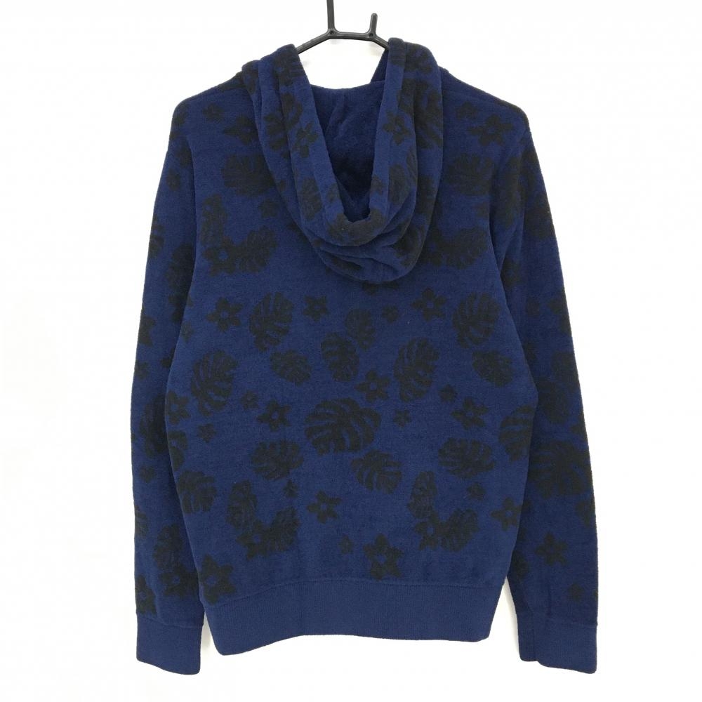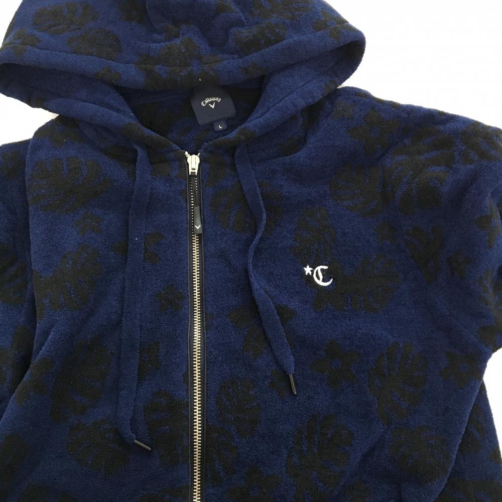 キャロウェイ ジップパーカー ネイビー×黒 リーフ柄 起毛 ブルゾン メンズ L ゴルフウェア Callaway