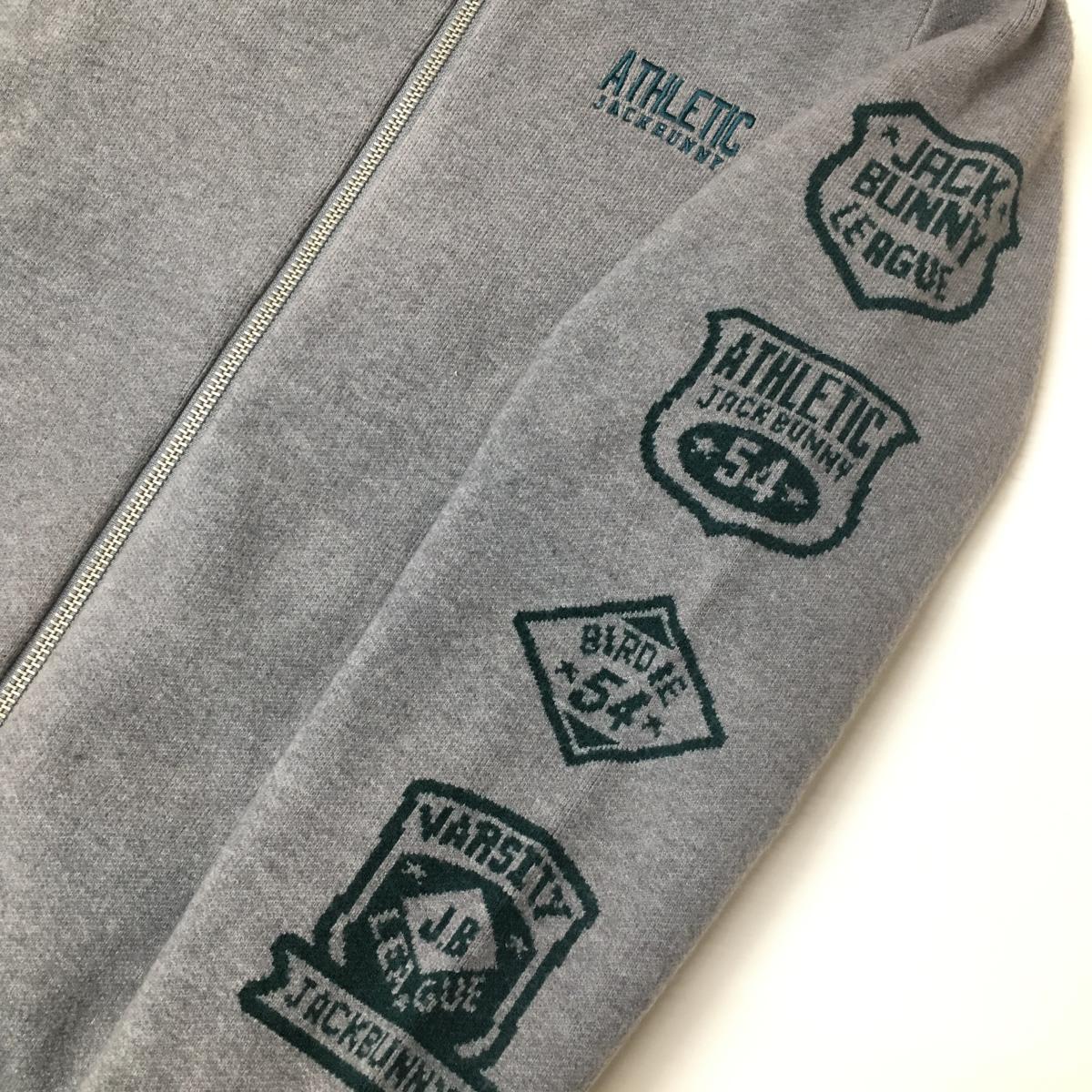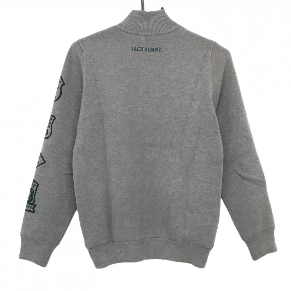 ジャックバニー ニットジャケット グレー×グリーン 袖ロゴ 裏地付 レディース 1(M) ゴルフウェア Jack Bunny