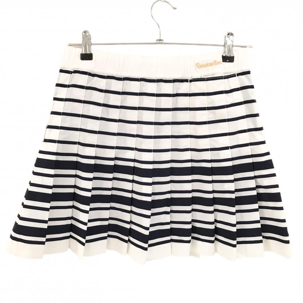 レザレクション プリーツスカート 白×ネイビー ボーダー ウエストゴム&調節紐 レディース XS ゴルフウェア Resurrection