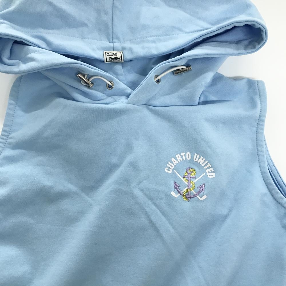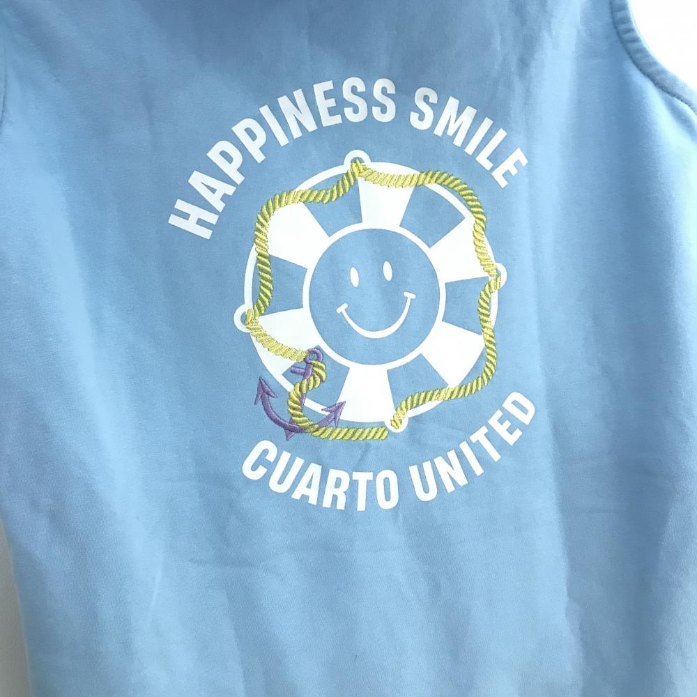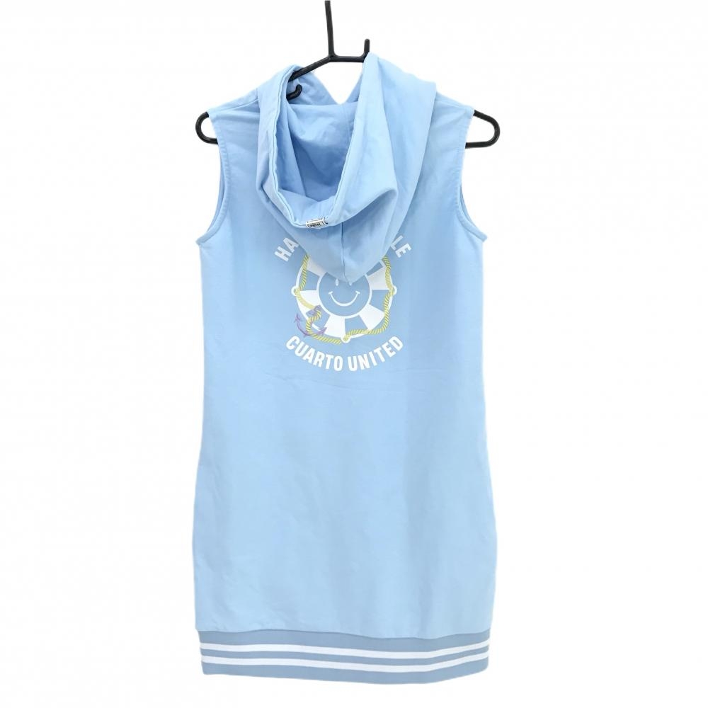 【美品】クアルトユナイテッド ノースリーブワンピース ライトブルー×白 バックプリント レディース M ゴルフウェア CUARTO UNITED