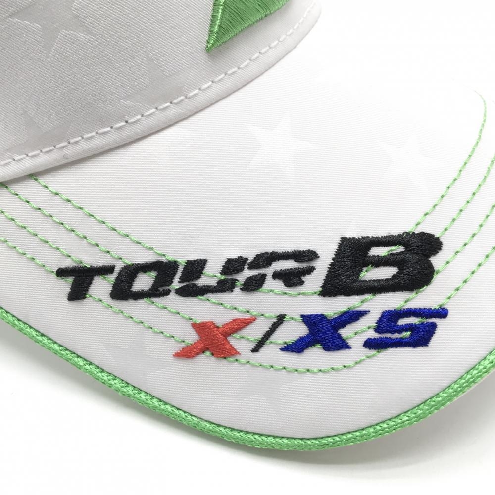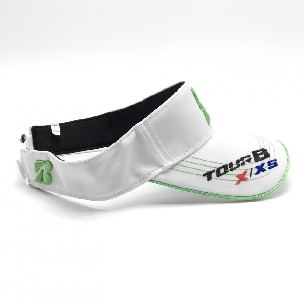 【超美品】ブリヂストンTOURB サンバイザー 白 星地模様 ロゴライトグリーン 56.5cm ゴルフウェア Bridgestone