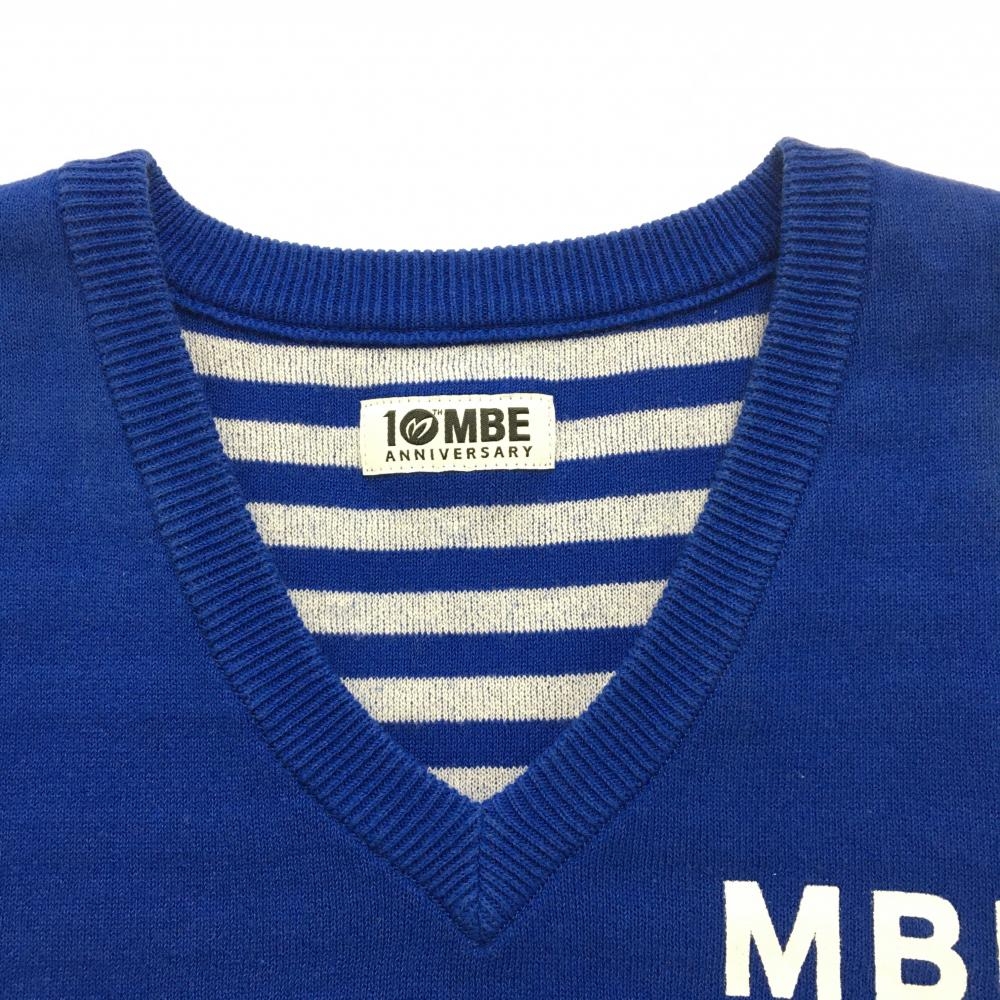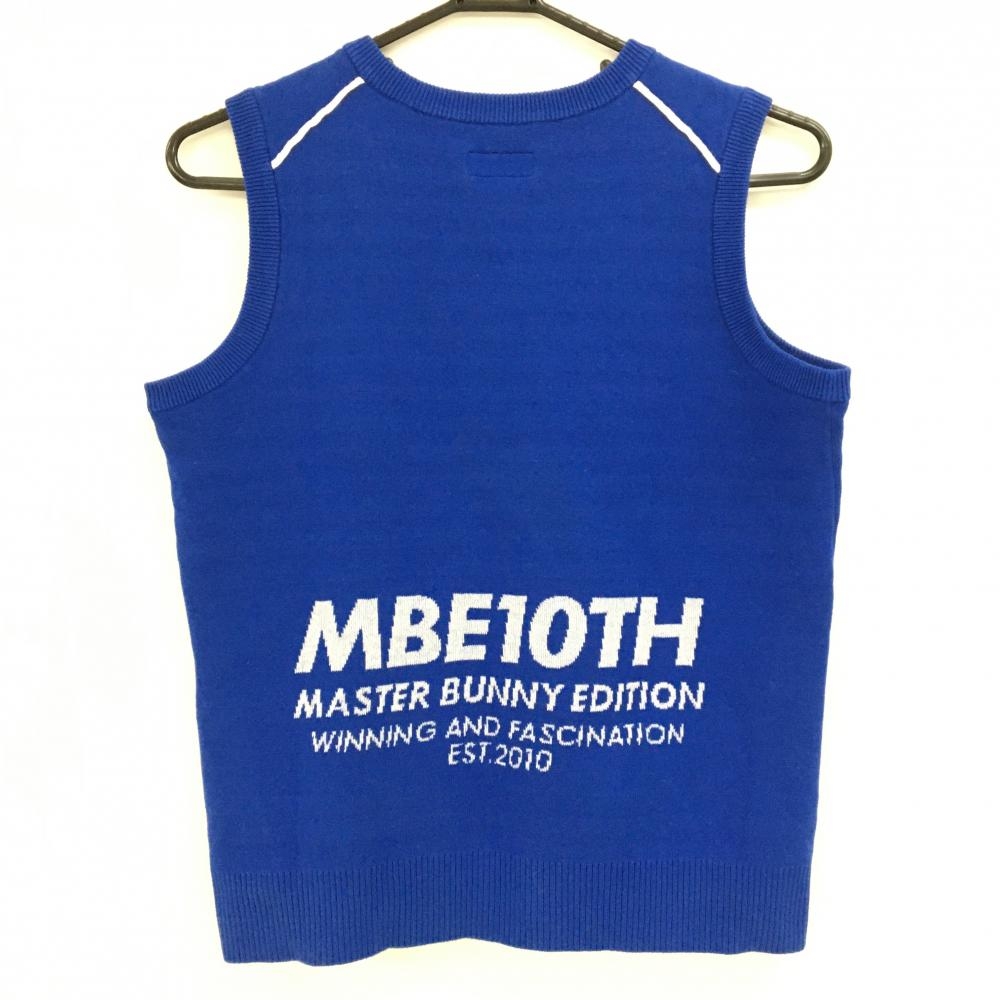 マスターバニー ニットベスト ブルー×白 バックロゴ コットン混 10周年 レディース 0(S) ゴルフウェア MASTER BUNNY EDITION
