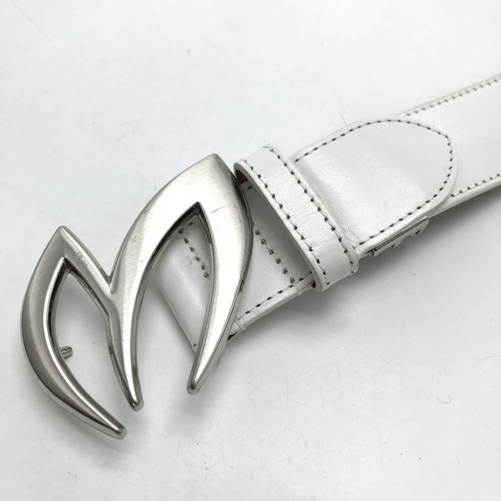【美品】マスターバニー トップ式ベルト 白×ブルー ロゴ シルバーバックル レディース ゴルフウェア MASTER BUNNY EDITION