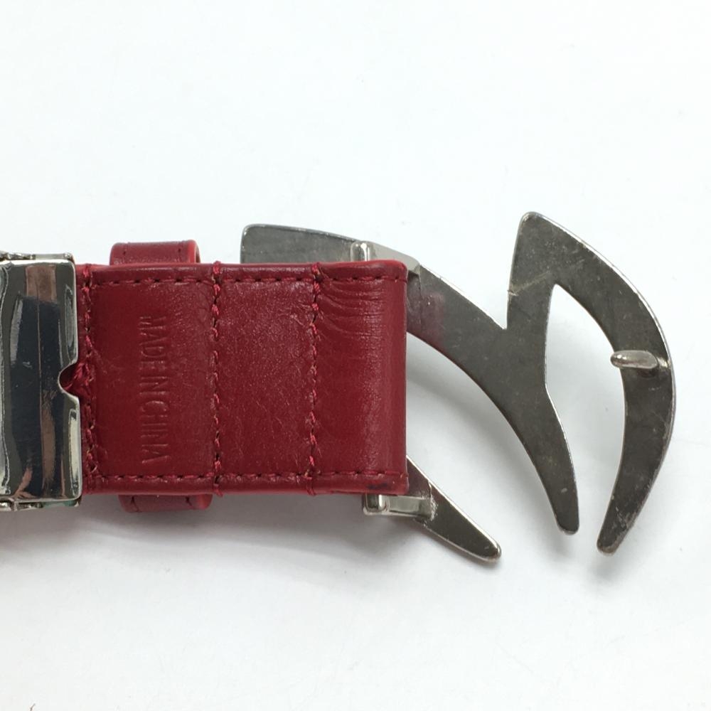【美品】マスターバニー トップ式ベルト レッド×ネイビー ロゴ シルバーバックル レディース ゴルフウェア MASTER BUNNY EDITION