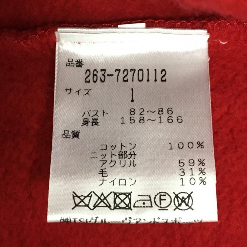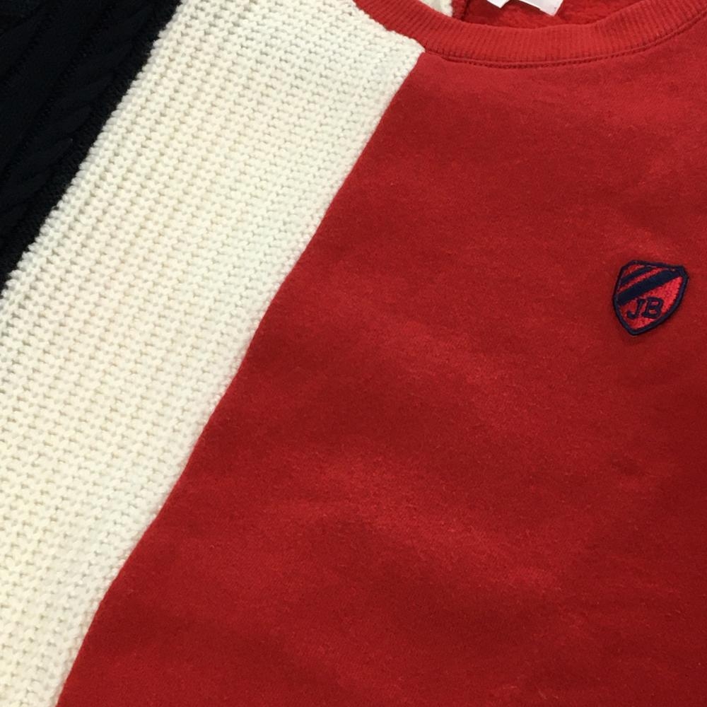 ジャックバニー 切替トレーナー レッド×ネイビー×白 ニット ケーブル編み 一部裏起毛 レディース 1(M) ゴルフウェア Jack Bunny