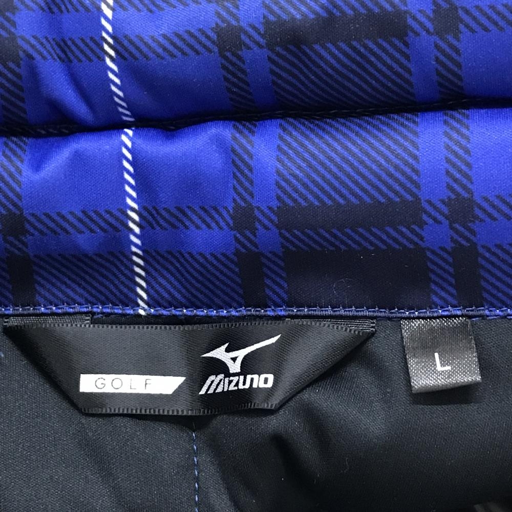 【美品】ミズノゴルフ 中綿ジャケット ブルー×黒 チェック メンズ L ゴルフウェア MIZUNO