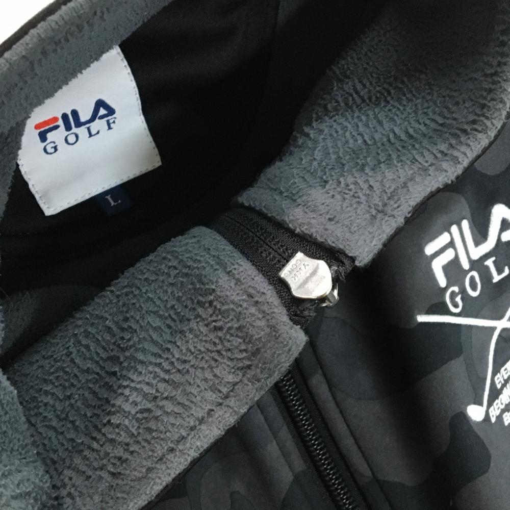 【美品】フィラゴルフ ブルゾン グレー×黒 カモフラ柄 裏微起毛 メンズ L ゴルフウェア FILA GOLF