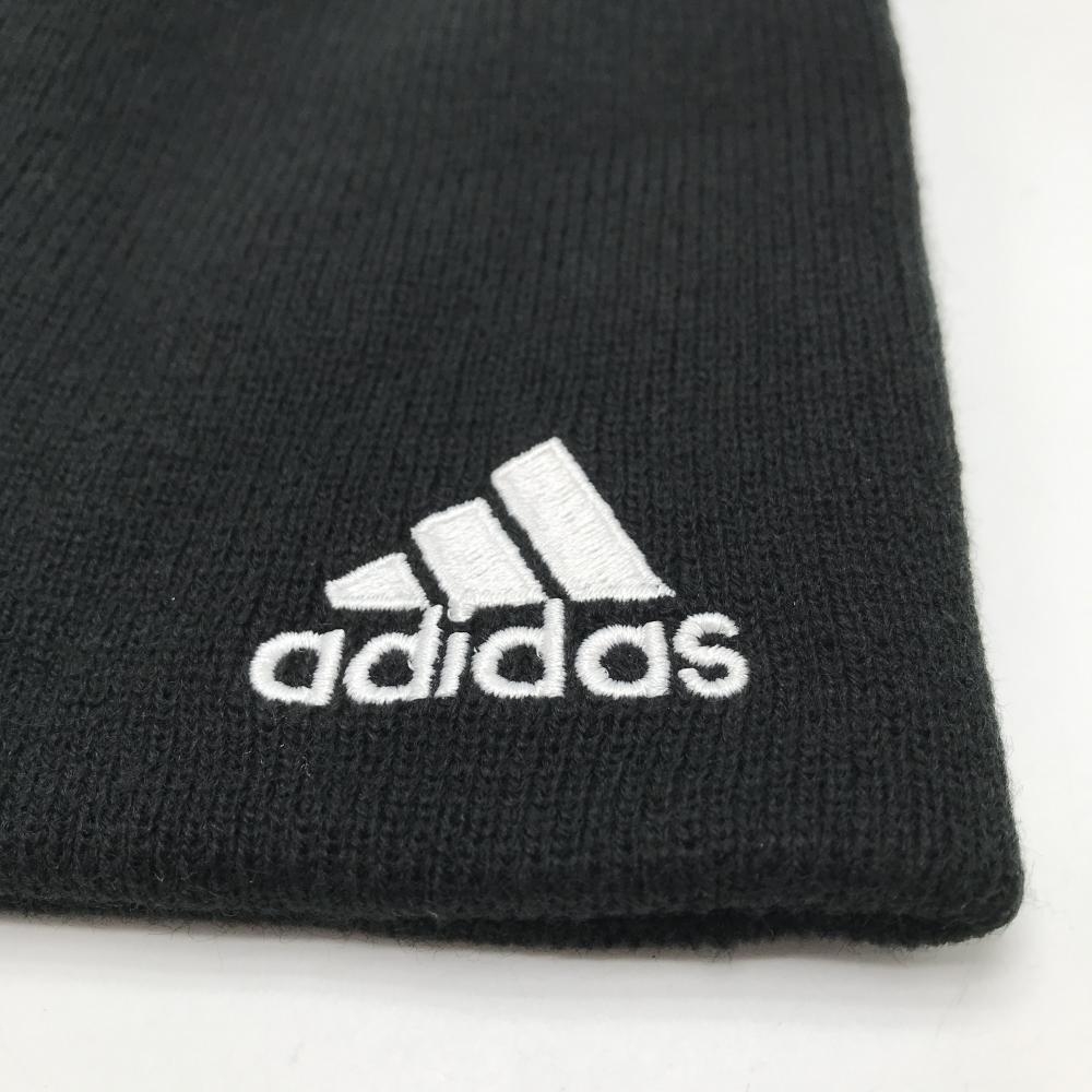 【新品】アディダス ニット帽 黒×白 ロゴ刺しゅう フリー(57-59㎝) ゴルフウェア adidas