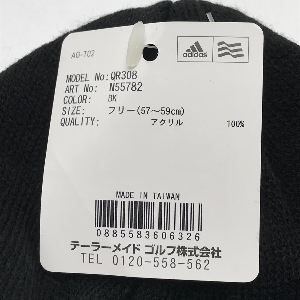 【新品】アディダス ニット帽 黒×ベージュ ロゴ刺しゅう フリー(57-59㎝) ゴルフウェア adidas