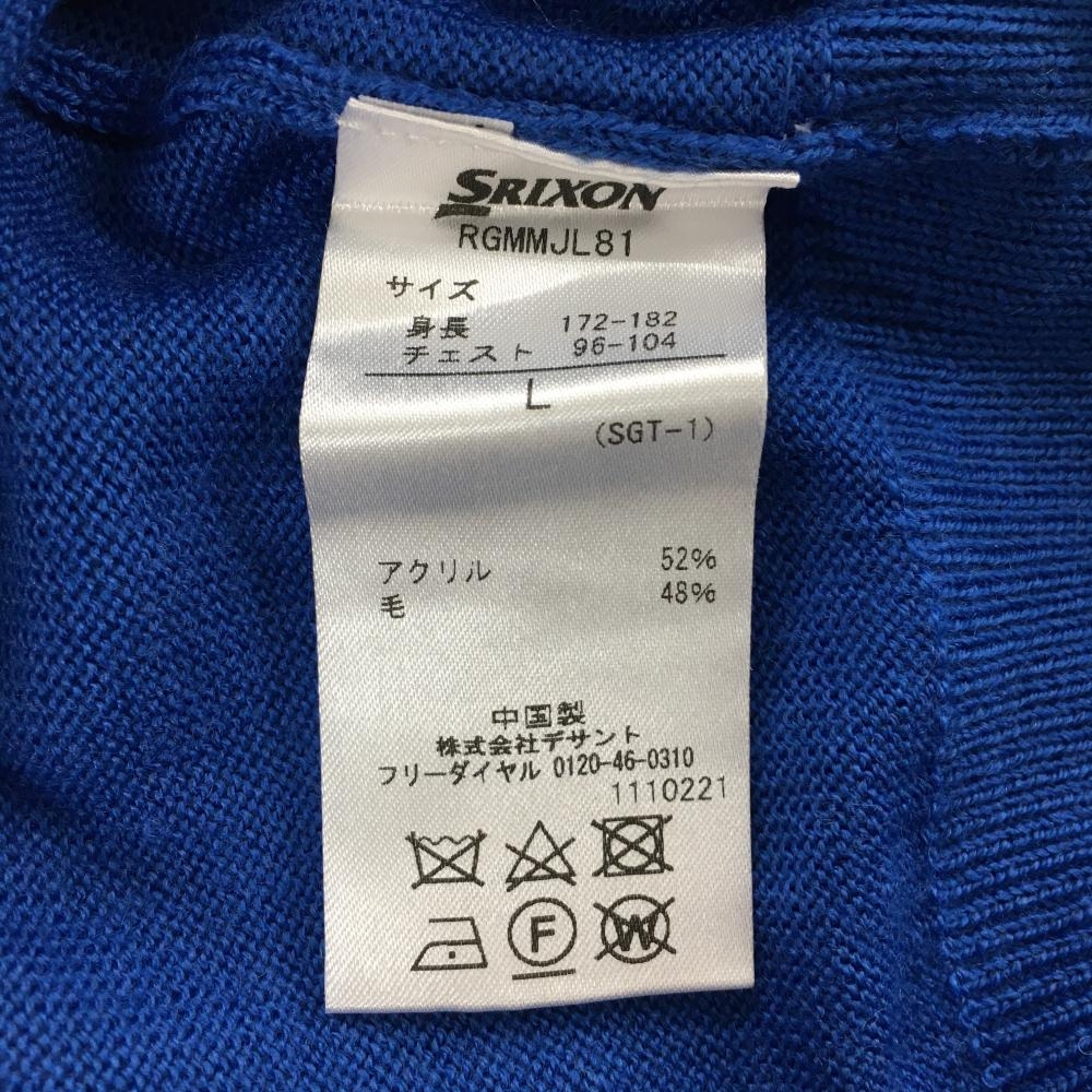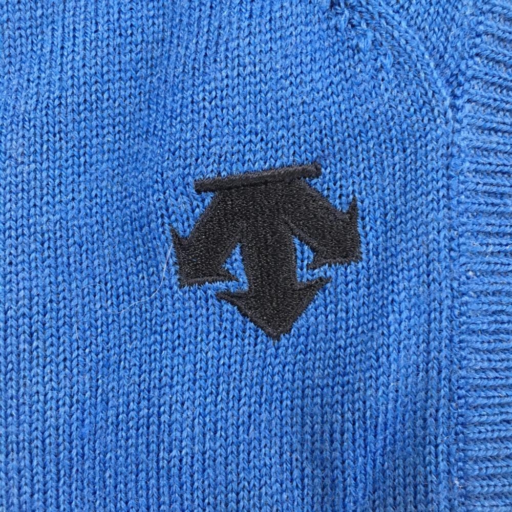 【新品】スリクソンバイデサント ニットベスト ブルー×ネイビー ロゴ刺しゅう ウール混 メンズ L ゴルフウェア SRIXON