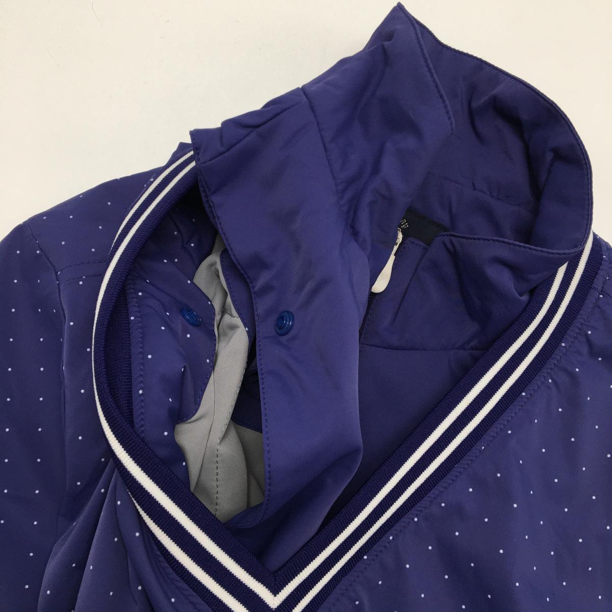【美品】キャロウェイ 4WAY中綿スニード パープルネイビー×白 ドット柄 ネック・袖着脱可 レディース L ゴルフウェア Callaway
