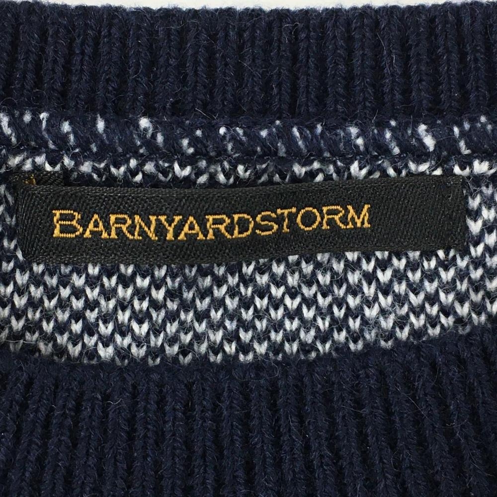 【美品】バンヤードストーム セーター ネイビー×白 フロントロゴ ウール混 ニット レディース 0 ゴルフウェア BARNYARDSTORM
