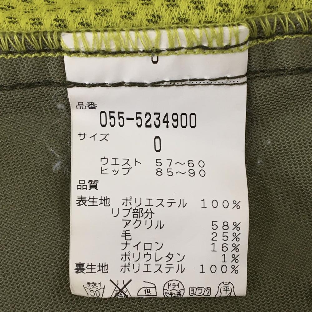 【美品】パーリーゲイツ スカート ダークグリーン×イエロー ロゴ刺しゅう ウエストゴム レディース 0(XS) ゴルフウェア PEARLY GATES