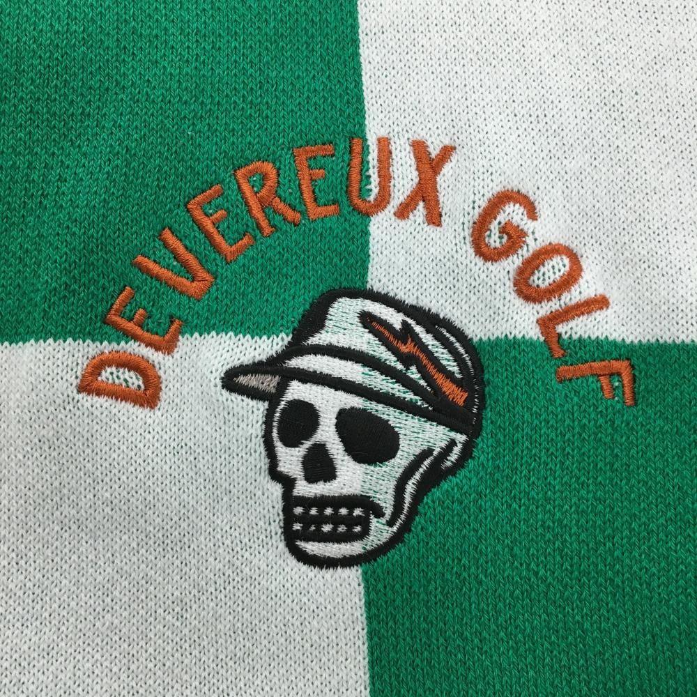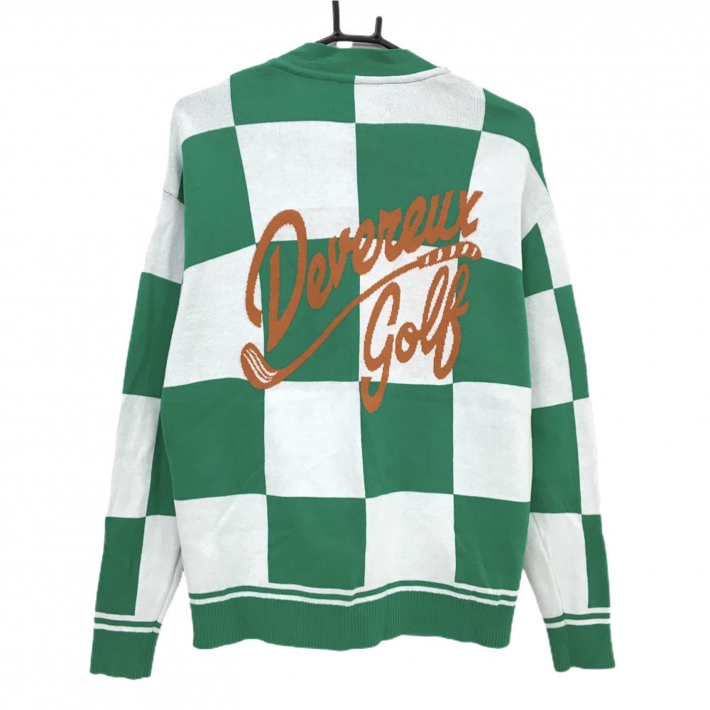 【美品】デヴァローゴルフ ニットカーディガン グリーン×黒 ブロックチェック スカル 腰糸引き メンズ S ゴルフウェア DEVEREUX GOLF