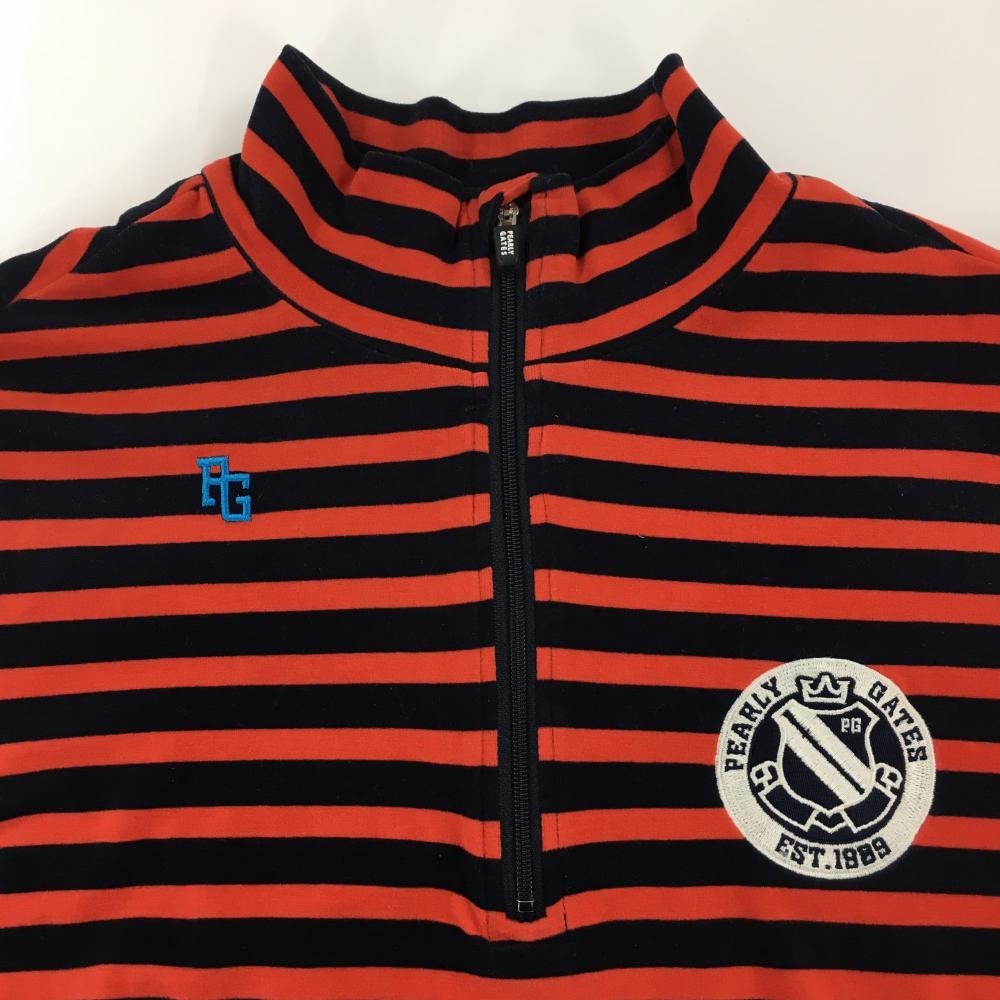 パーリーゲイツ 長袖ハイネックシャツ レッド×ネイビー ボーダー 表微起毛 ハーフジップ レディース 1(M) ゴルフウェア PEARLY GATES