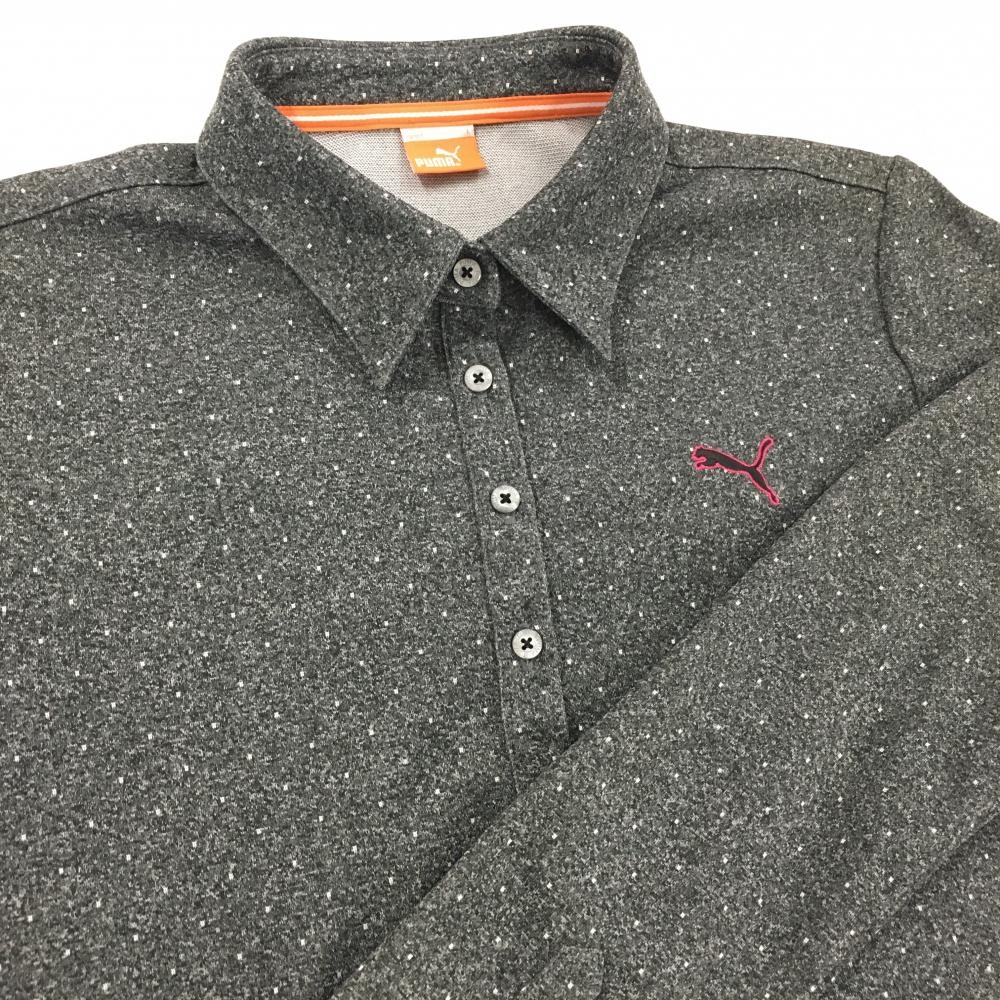 【超美品】プーマ 長袖ポロワンピース 杢グレー×白 ドット柄 ロゴ刺しゅう DRYCELL レディース L ゴルフウェア PUMA