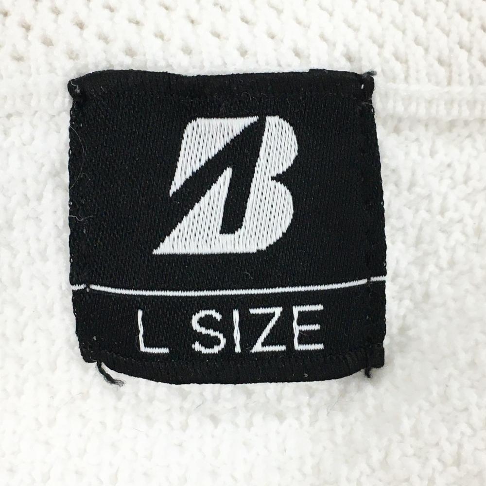 【美品】ブリヂストン セーター 白 身頃・袖織生地 胸元ロゴ Vネック ニット メンズ L ゴルフウェア Bridgestone