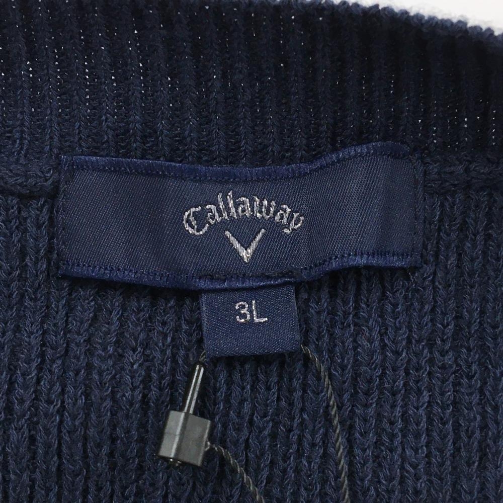 【新品】キャロウェイ ニットベスト ネイビー ロゴ刺しゅう 麻混 メンズ 3L ゴルフウェア 2024年モデル 大きいサイズ Callaway