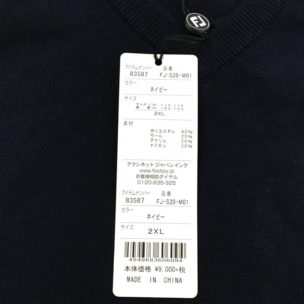 【新品】フットジョイ ニットベスト ネイビー ロゴ刺しゅう ウール混 メンズ 2XL ゴルフウェア 大きいサイズ FootJoy