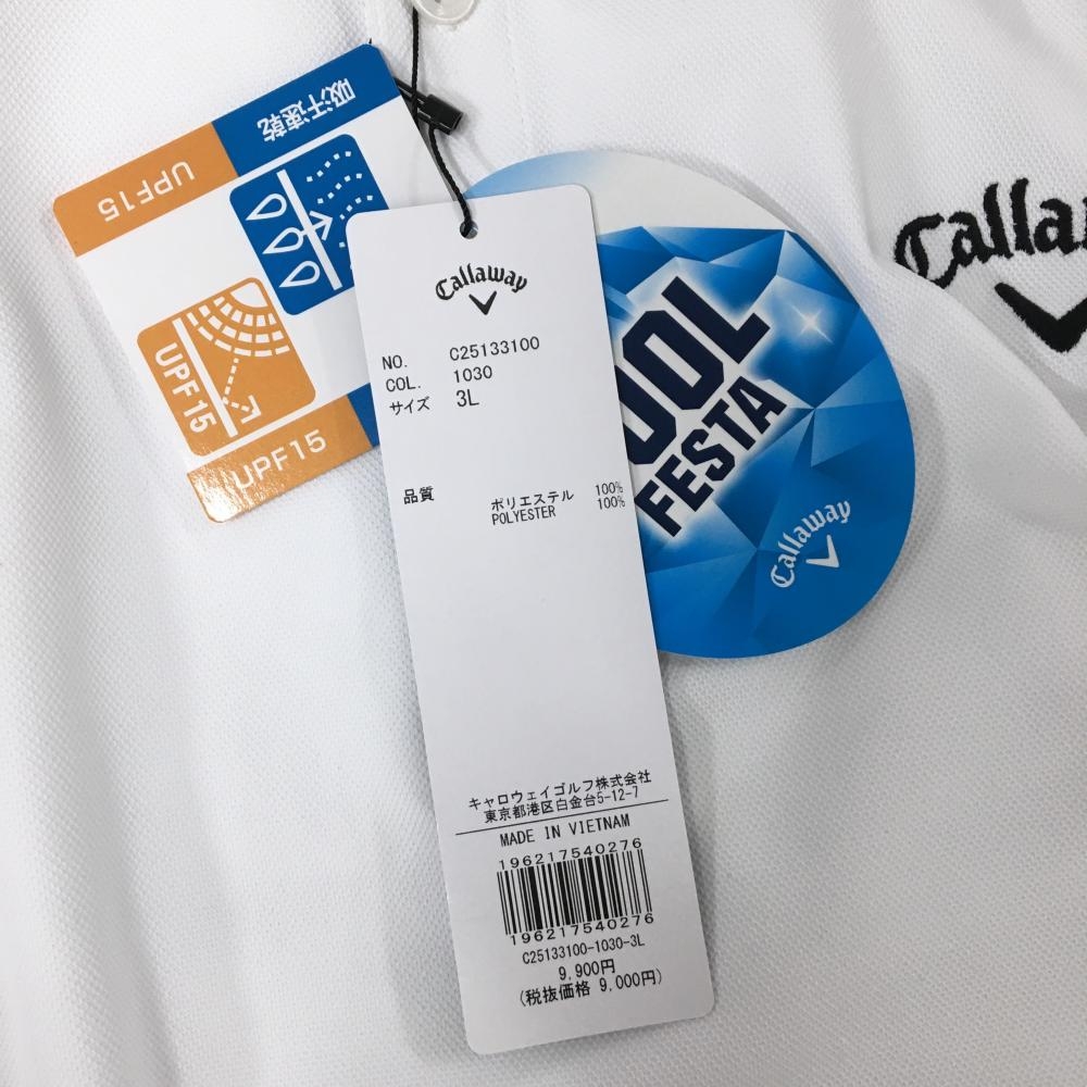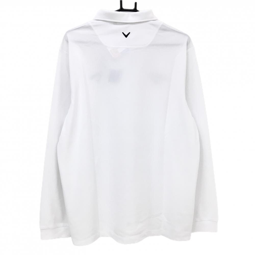 【新品】キャロウェイ 長袖ポロシャツ 白 ロゴ刺しゅう黒 吸汗速乾 UPF15 メンズ 3L ゴルフウェア 2025年モデル 大きいサイズ Callaway