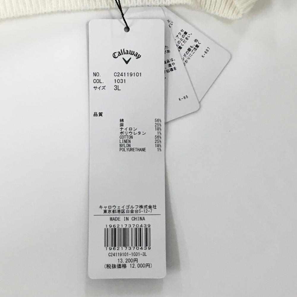 【新品】キャロウェイ ニットベスト 白 ロゴ刺しゅう 麻混 メンズ 3L ゴルフウェア 2024年モデル 大きいサイズ Callaway