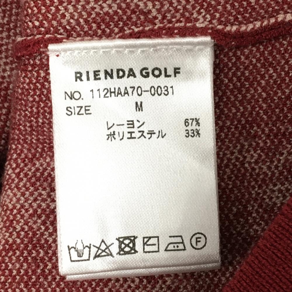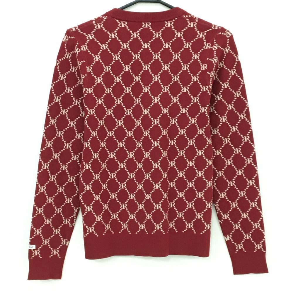 【超美品】リエンダゴルフ セーター レッド×ライトベージュ ロゴ総柄 ニット レディース M ゴルフウェア RIENDA GOLF
