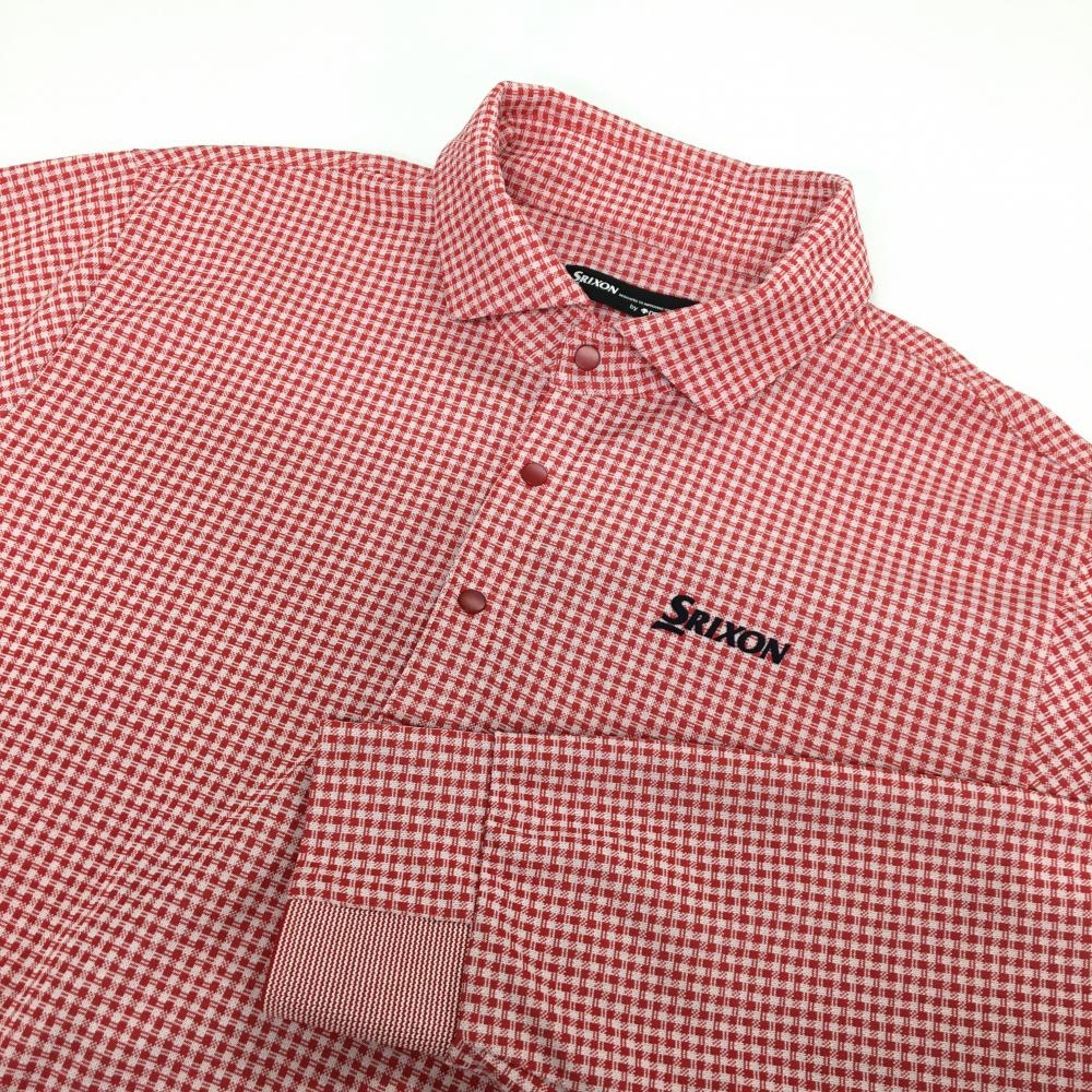 【超美品】スリクソンバイデサント 長袖ポロシャツ 白×レッド 総柄 チェック風 ロゴプリント メンズ LL ゴルフウェア SRIXON