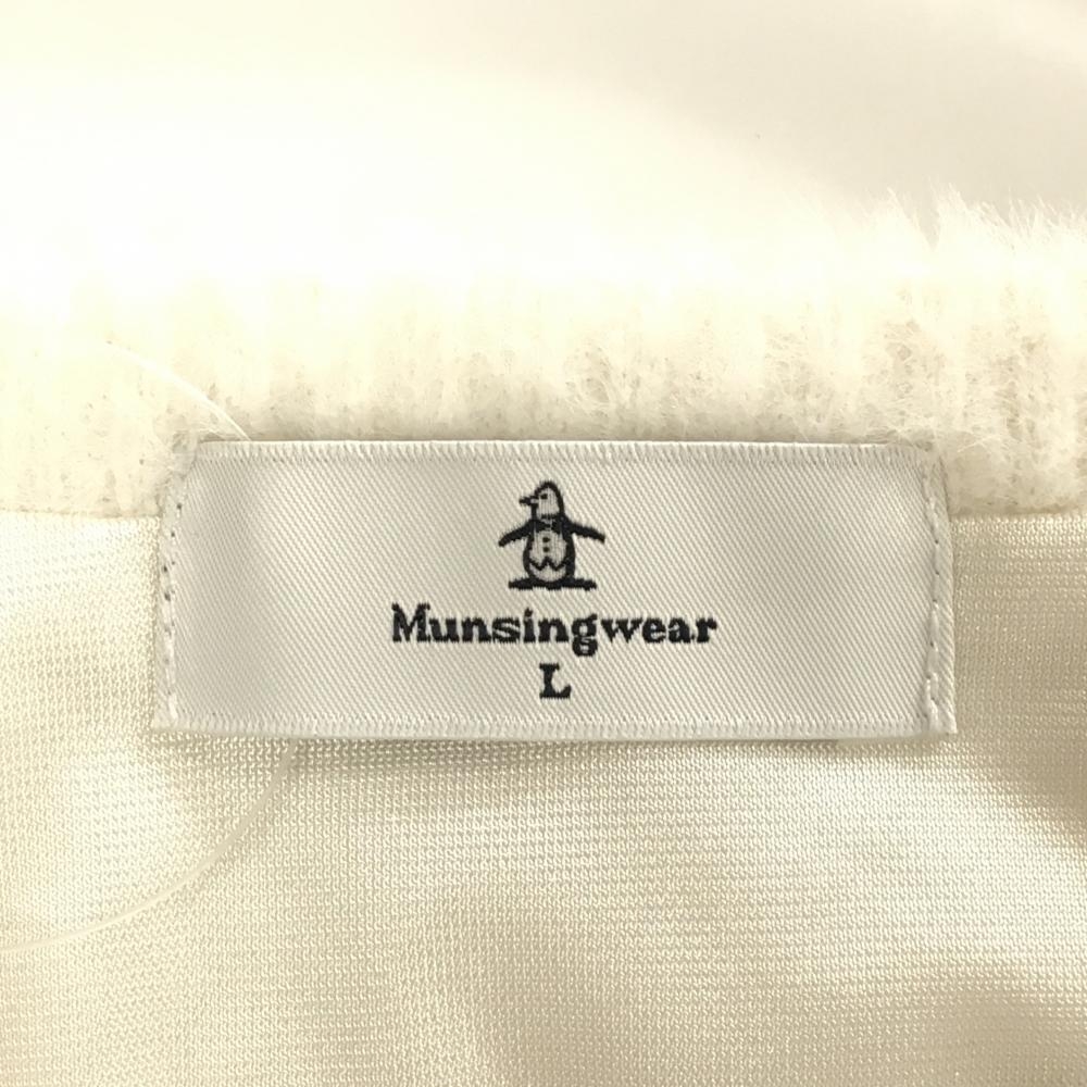 【超美品】マンシングウェア セーター 白×ネイビー シャギーニット 胸元切替 ロゴ刺しゅう レディース L ゴルフウェア Munsingwear