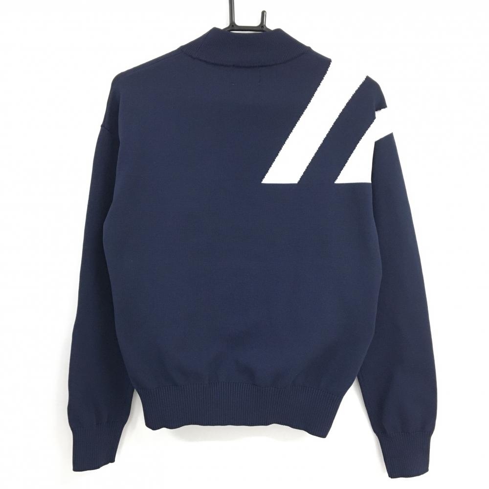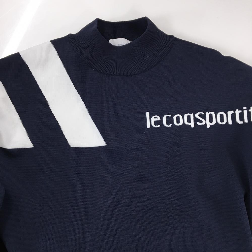 【美品】ルコックゴルフ ハイネックセーター ネイビー×白 フロントロゴ ニット レディース L ゴルフウェア le coq sportif